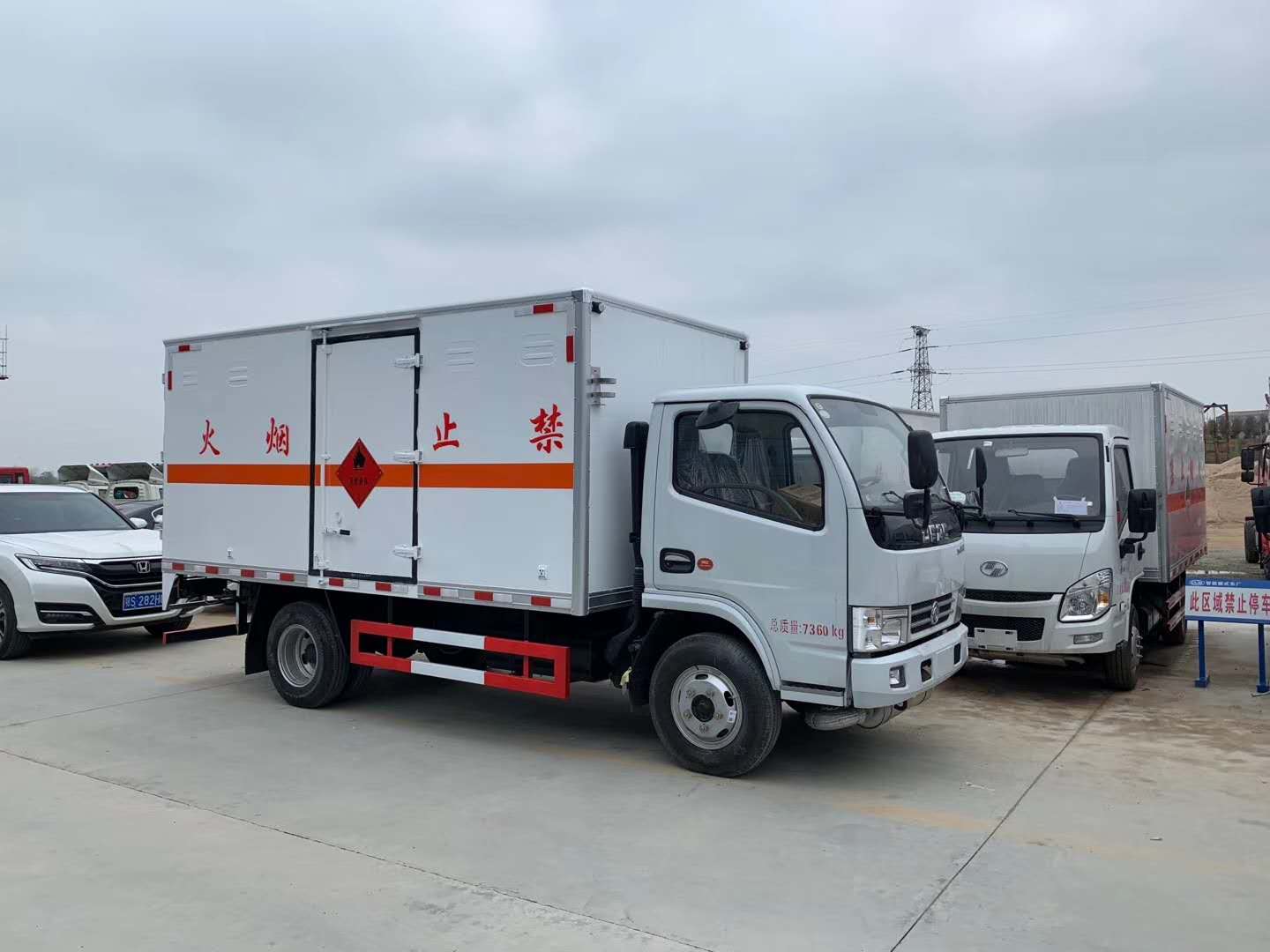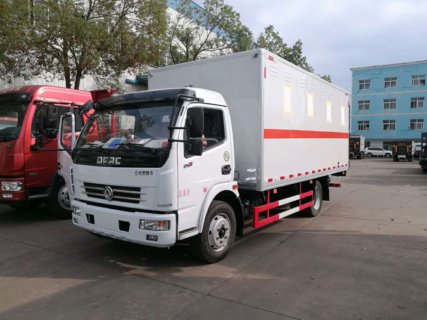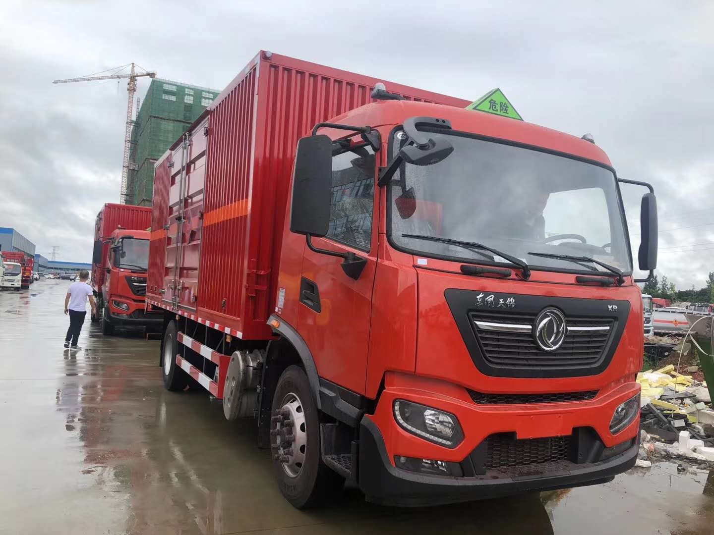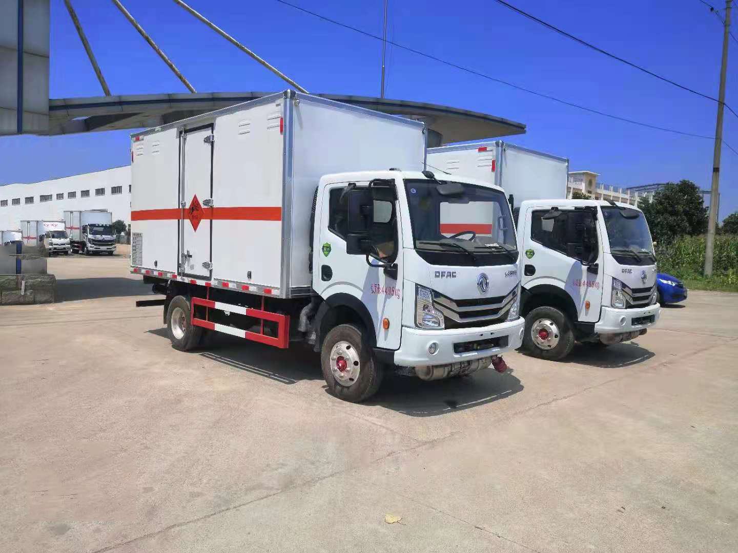 杭州陳總訂購2臺東風天錦易燃液體廂式車發車
