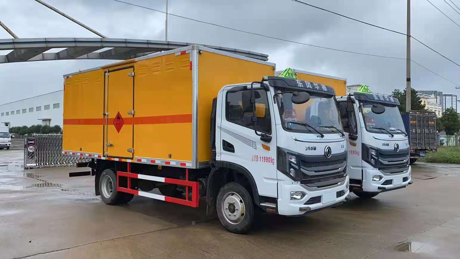 東風D9國六黃色瓦楞板危險品車批量發車