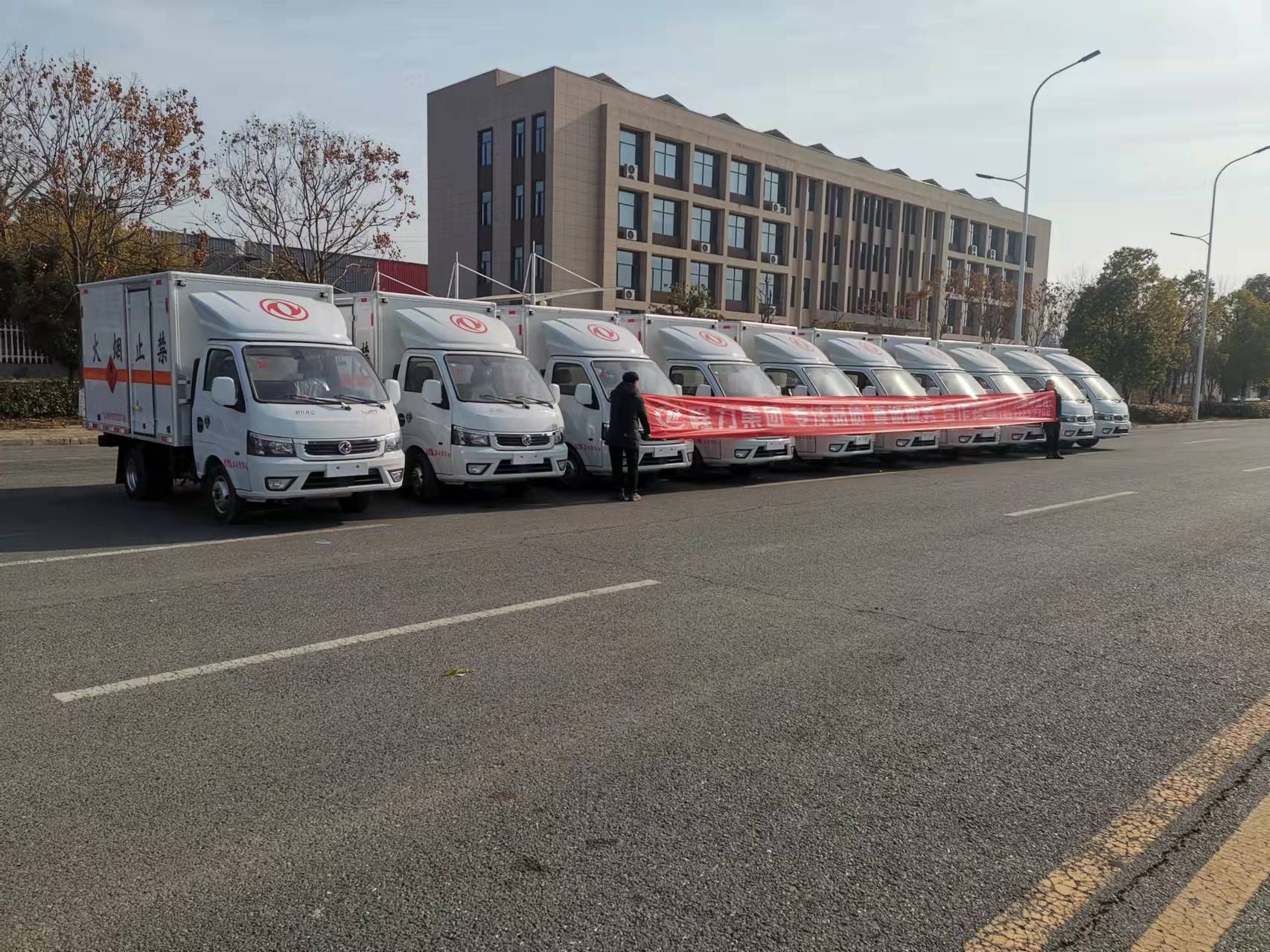 陜西王總訂購六臺東風多利卡易燃氣體廂式車發車