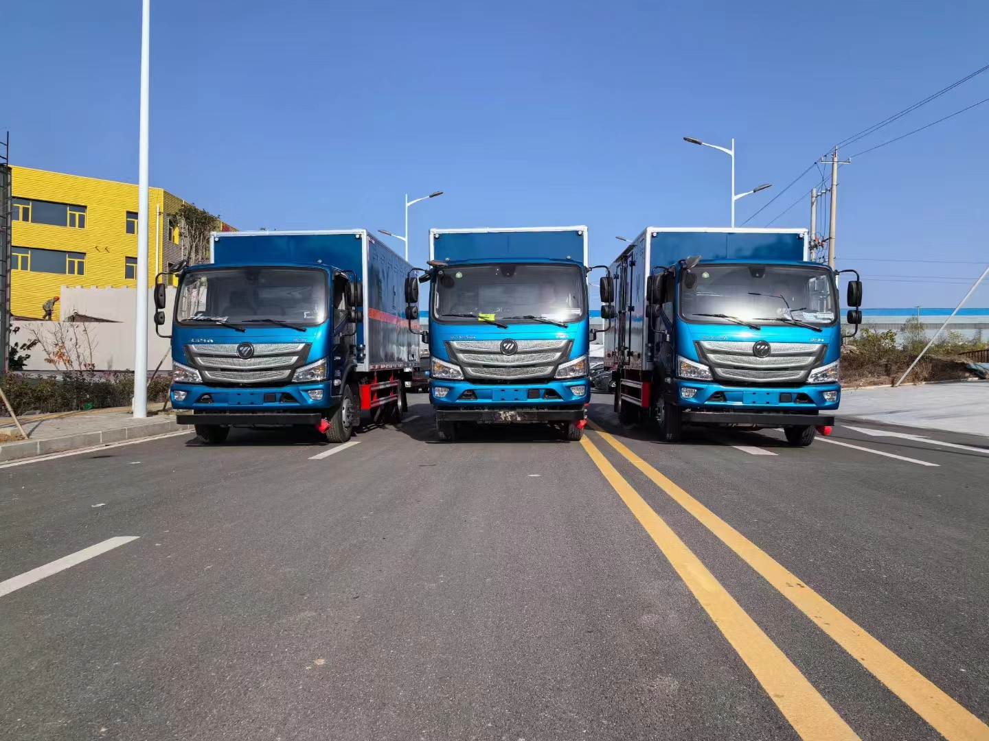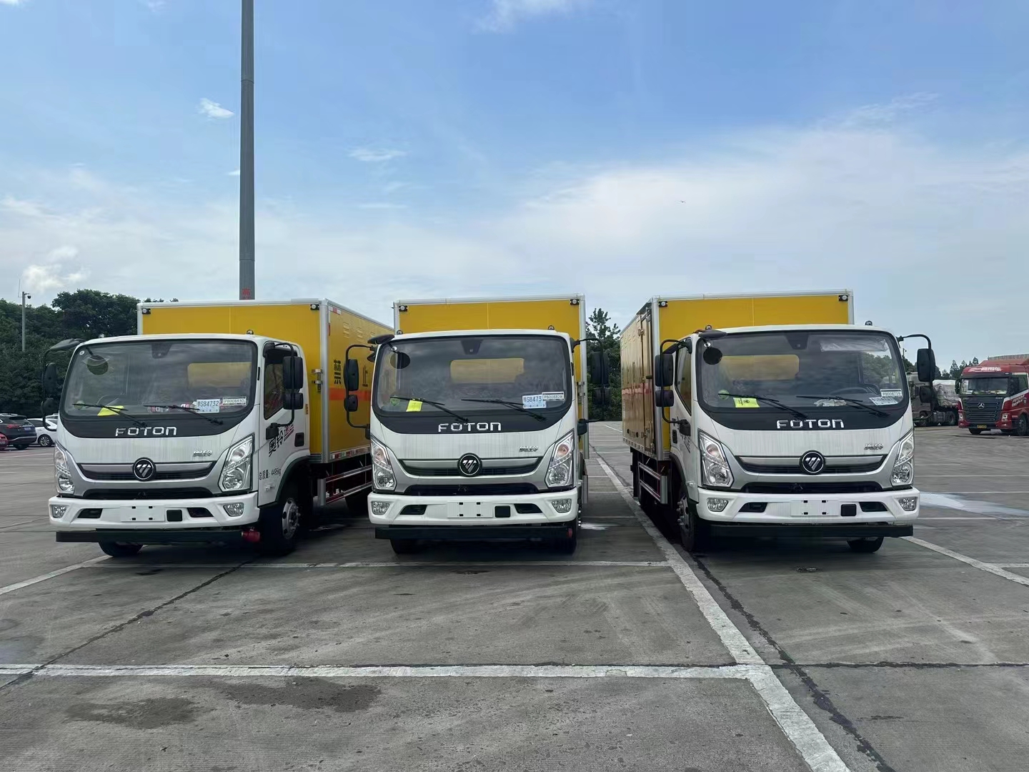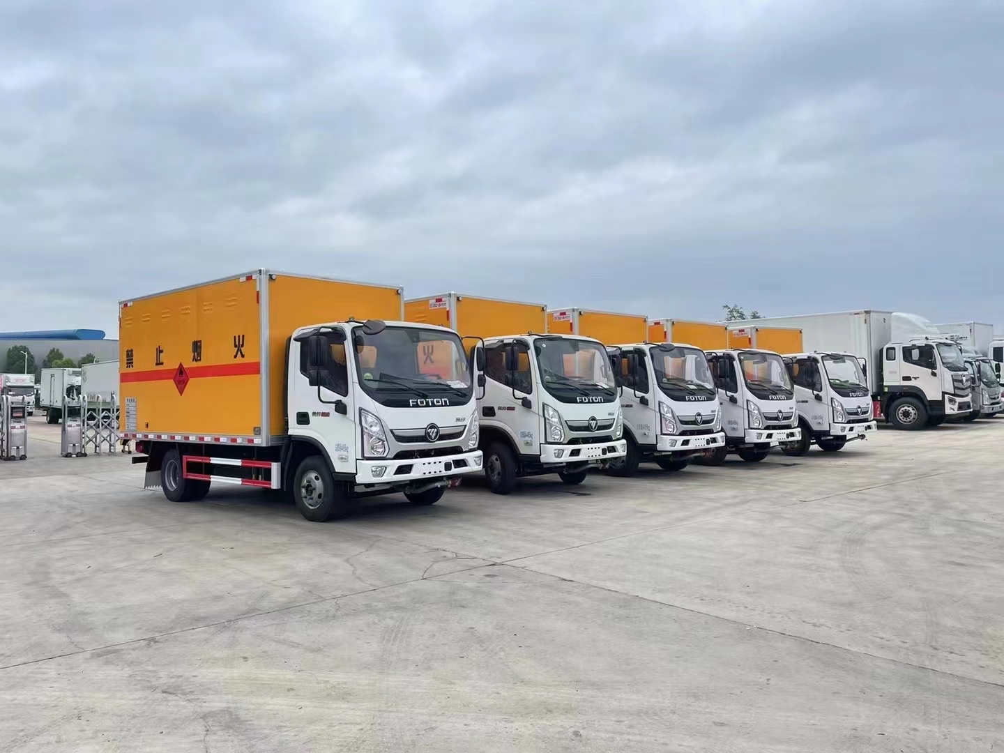 湖南李總訂購5臺福田歐馬可黃色危險品車