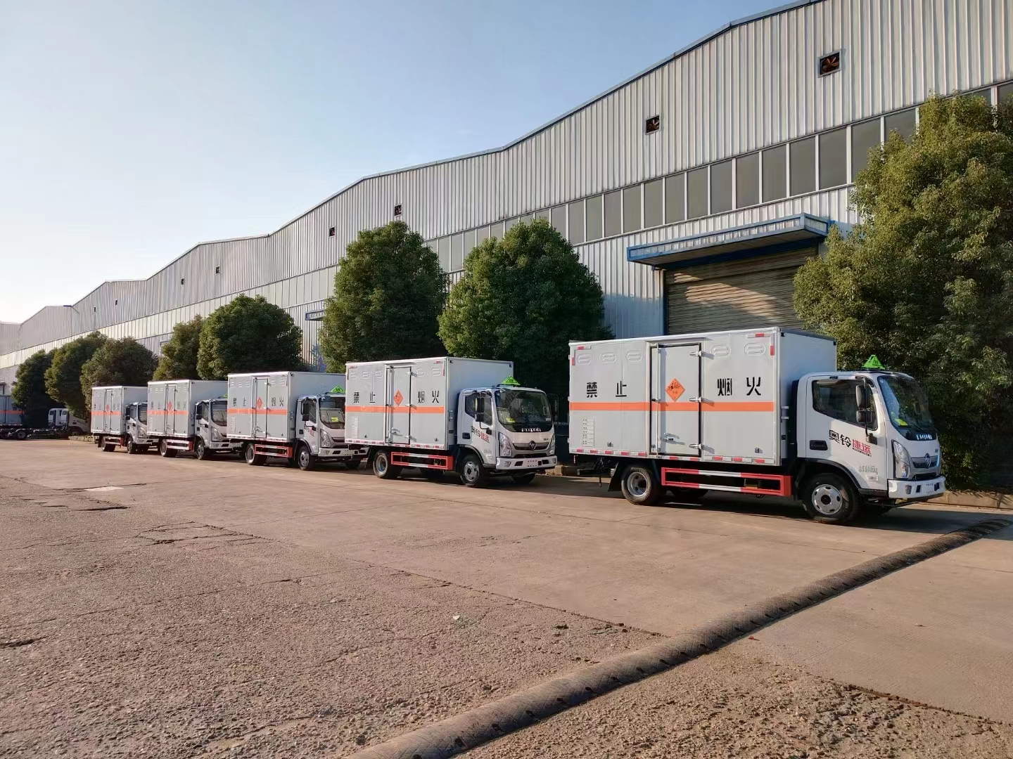 三臺福田奧鈴國六瓦楞板危險品車發車