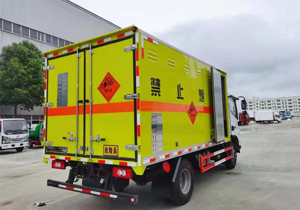 該車適用于運輸危險品。廂體頂部封閉,不可開啟。該車用于運輸具有獨立容器(瓶)包裝的爆炸品。類項號:1.1B,1.1G,1.3C,1.1D,1.2D,1.3C,1.1C,1.4G。