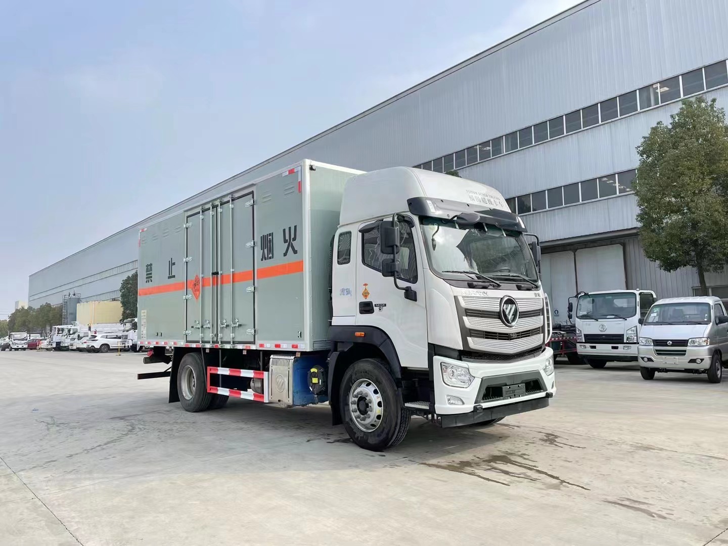 嚴格按照公告尺寸制作。外板采用優質冷軋鋼板帶百葉窗,內飾為導電性能良好的鋁平板有透氣孔,矩形骨架結構內部填充防潮阻燃擠朔板,復合加鉚合工藝。廂體四周鋁合金包邊及包角,車廂底板鋪設防靜電膠皮,廂體前臉50公分高鋪設防靜電膠皮。后部設置對開門,可選裝側門位置,廂體內部兩側安裝捆綁貨物的臥環。廂體內部安裝氣體器及感應防器及防盜報**器。車廂一周粘貼橙色放光帶,箱體粘貼 菱形告示牌,安全告示牌,危險品牌,箱體安裝示廓燈(前白后紅),拖地靜電帶。