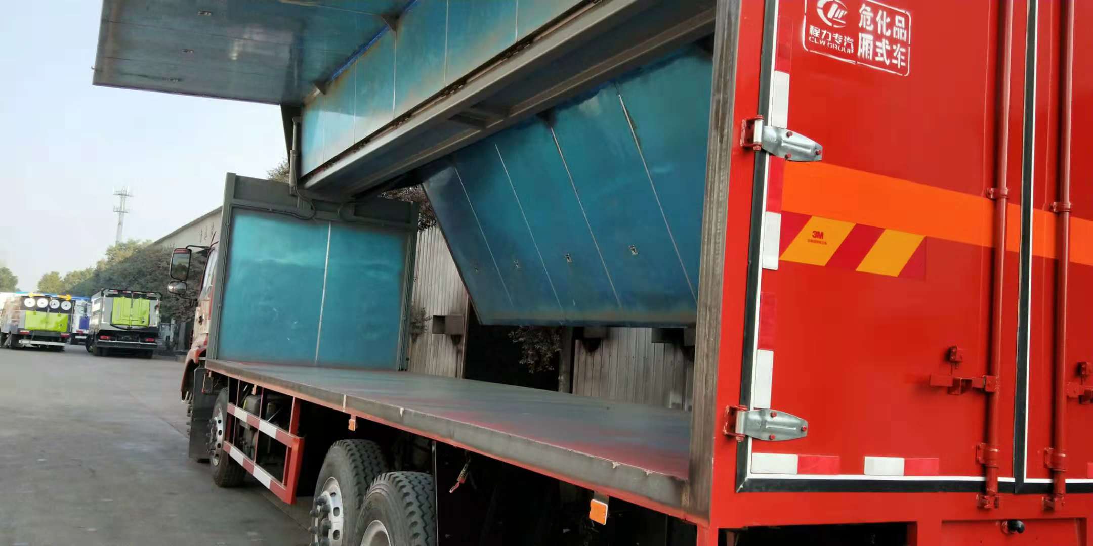 冰冷的世界里,還有有溫度的車輛。河南開封郭總欲購一臺前四后六的雜項危貨車,通過多家比較最終選擇能夠滿足他要求的程力專汽危貨車廠?紤]到車廂太長,我司陳經理建議郭總進行車廂翼展處理。郭總采納了陳經理的意見進行了車輛訂購預付定金。通過十天時間,郭總訂購的歐曼前四后六雜項翼展車已做好。