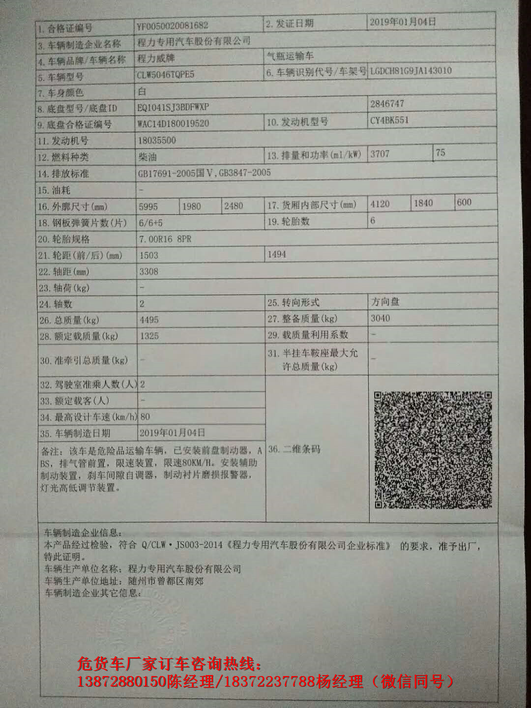 江西李總從事氣瓶運輸多年,因公司業務擴展增購一臺氣瓶運輸車。李總在網上找到我司陳經理,通過電話確認好車型,李總很快與陳經理簽訂了合同,選擇自提車輛!經過一周時間,車輛已做好!李總來廠看到做好的氣瓶車后非常滿意,立即支付了余款!整個購車過程,李總非常爽快地配合我司操作流程,我們深知這背后承載著李總對我司的完全信任!感謝李總的支持,祝生意興隆、用車愉快!我們將不斷努力,生產出更多適合市場需求的產品,不辜負客戶對我司的信任!