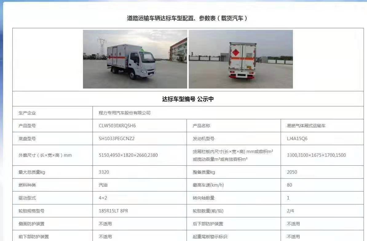 小型危險品車目前大部分地區已全面實施國六政策,客戶選購危險品車優先會選擇國六躍進易燃氣體廂式運輸車。為了滿足客戶需求,我司不斷更新車輛公告,今天為您推薦的是躍進國六易燃氣體廂式運輸車,該車安全達標和環保都已公示,客戶可安心下單,以下是具體明細: