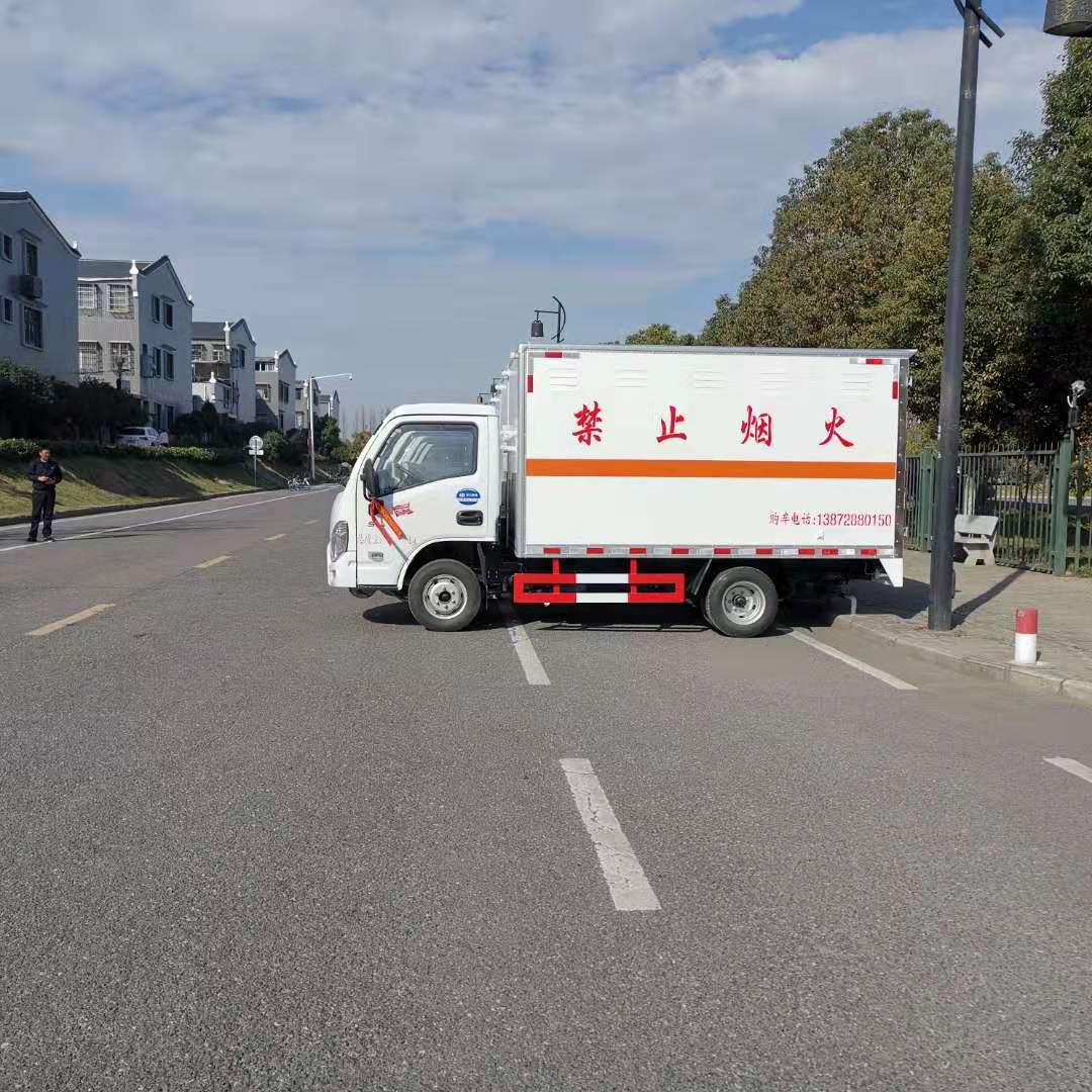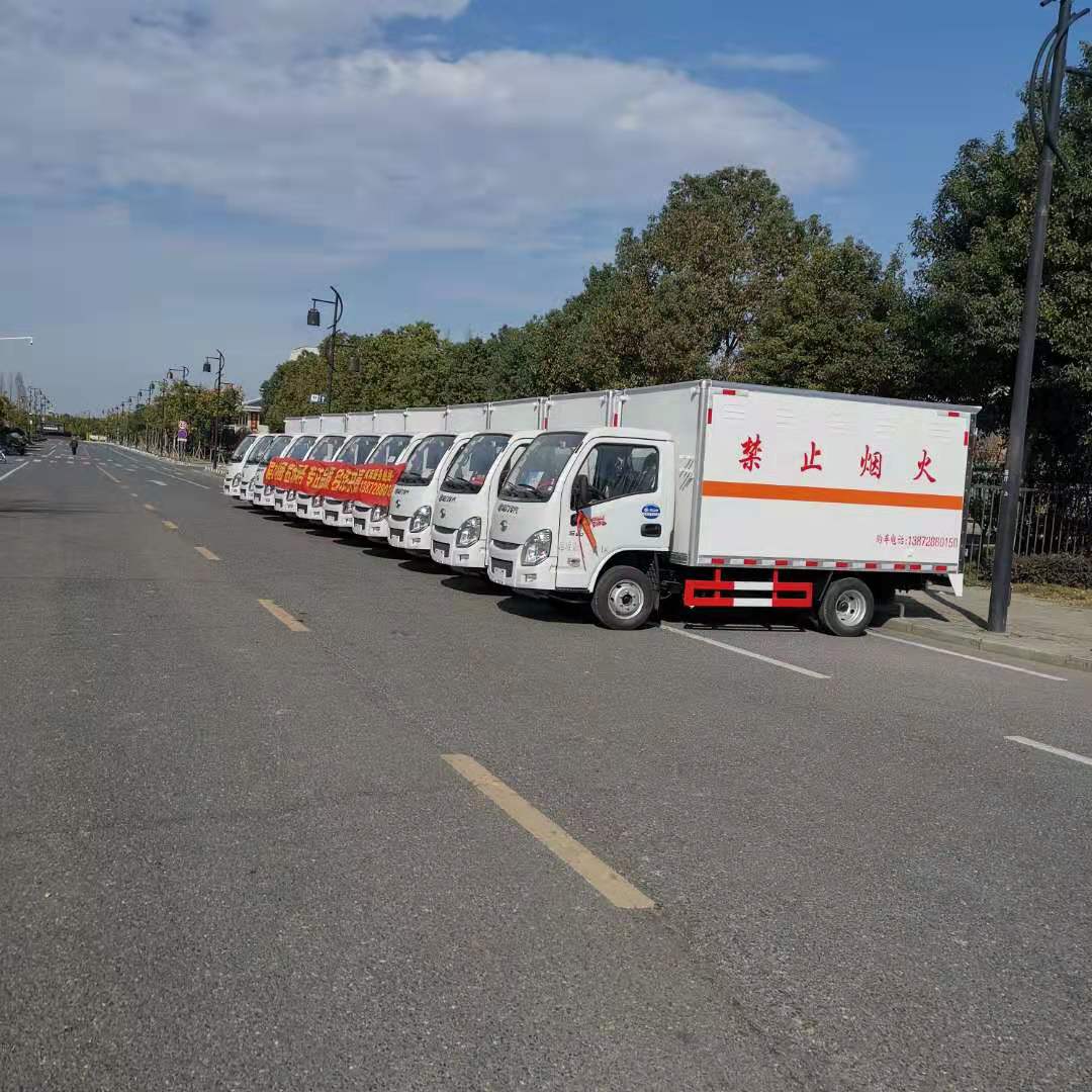 青海王總從事液壓石油氣運輸多年,因公司業務擴展增購20臺易燃液體廂式運輸車。我司陳經理為其推薦了躍進國五易燃液體廂式運輸車,該車采用上汽依維柯躍進生產的小福星原裝危險品專用底盤,2650mm軸距、柳州五菱汽油發動機(88馬力)、185R14后雙輪真空胎、排氣制動、電源開關、大燈調節、方向助力、前置排氣管、前盤制動裝置。貨廂尺寸為3300X1630X1690(mm)、廂體外飾冷板、內飾鋁板、中間為防阻燃泡沫、廂內安裝臥環、煙霧報警器、防盜報警器、右邊開側門、后雙開門、帶拖地靜電帶。