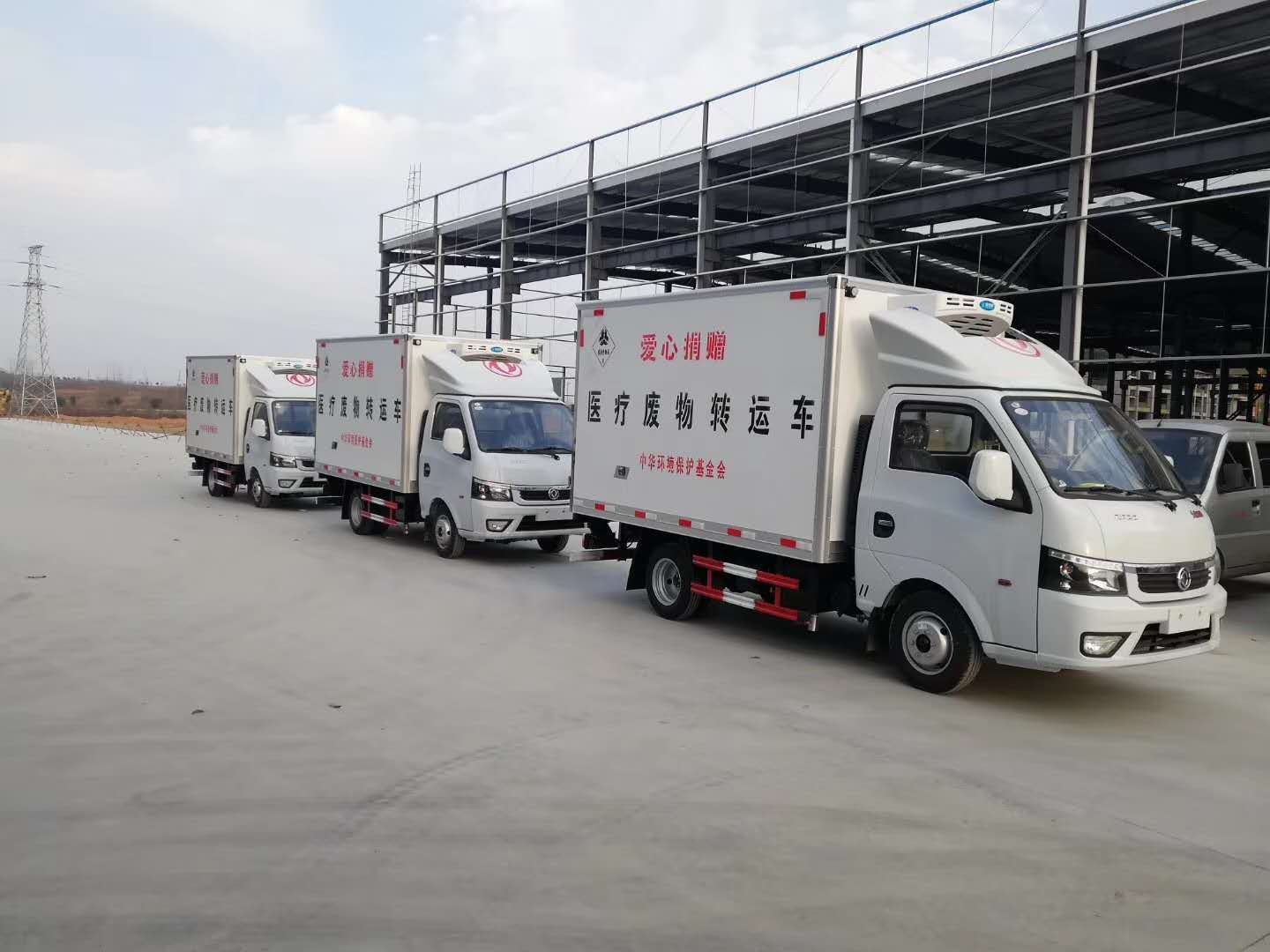因防控需求,盡量在源頭避免醫療垃圾污染的產生,各地新增醫療廢物轉運車供運輸醫療廢物轉運車。中華環境保護基金會愛心捐贈了大量醫療廢物轉運車在疫情嚴重的地方,其捐贈的車輛由我司生產并代為送到所需地方。以下是東風途逸醫療廢物轉運車批量發車實拍: