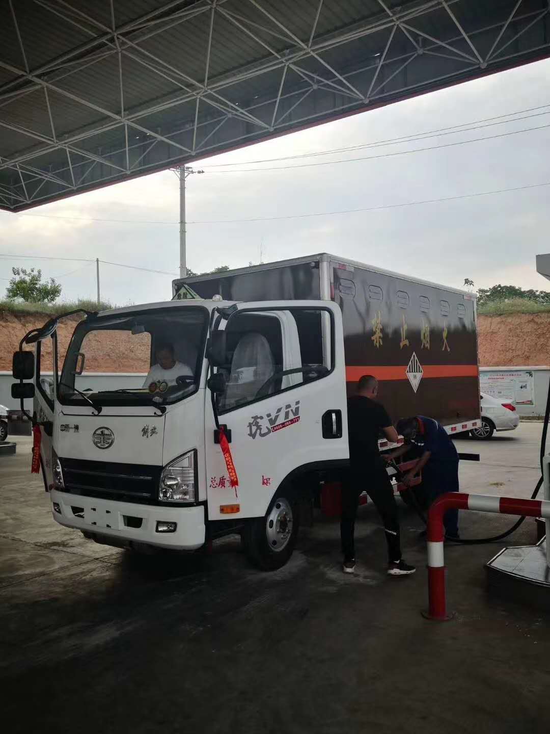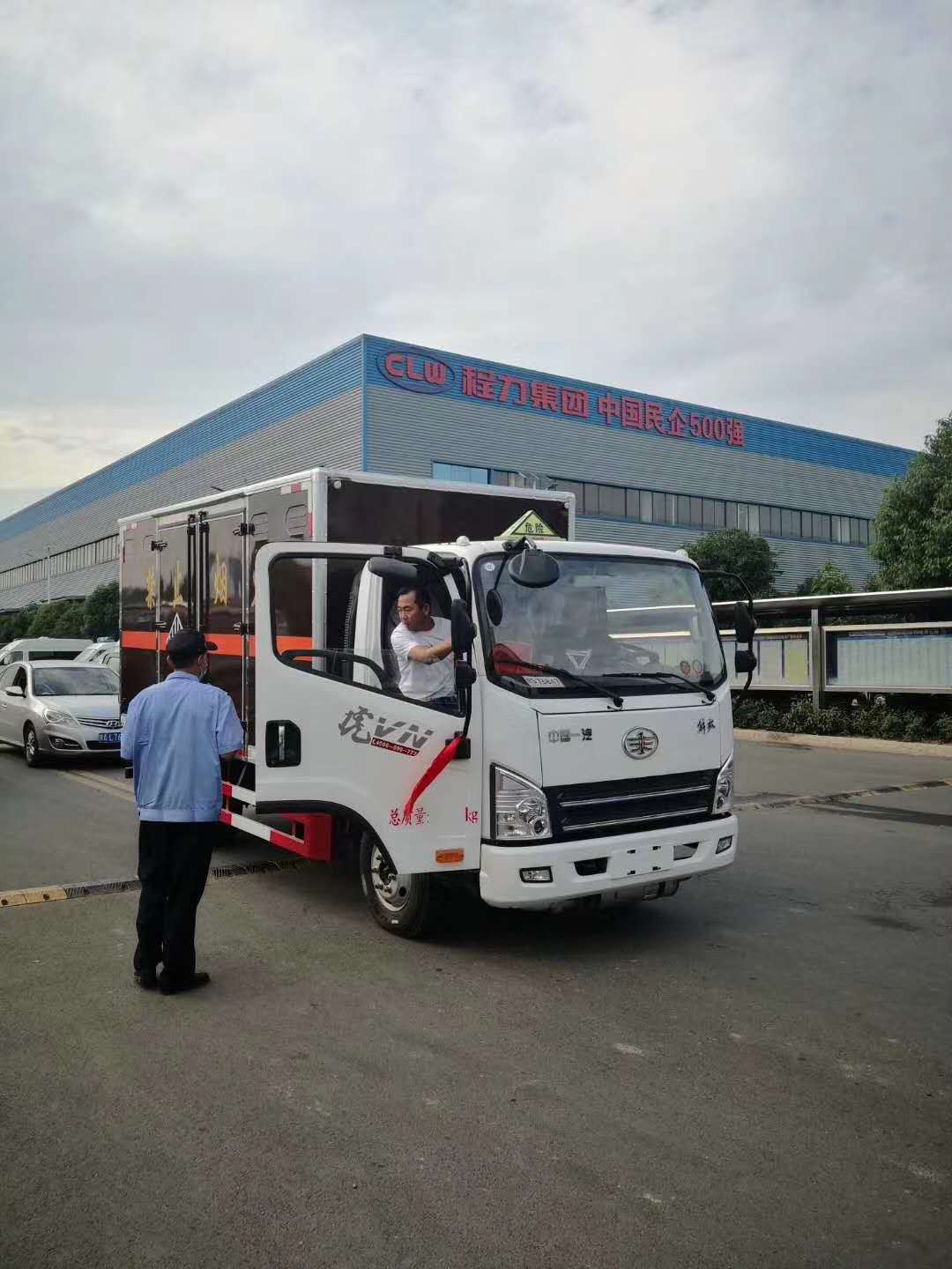 內蒙高總從事廢機油運輸多年,因公司業務需求增購一臺解放雜項廢舊電池運輸車。高總急用車,自己親自開車來隨州進行考察。高總在各個專業廠進行了考察,最終看到我司棕色廂體解放危險品車非常喜歡,廂體工藝更是吸引了高總。高總立即支付了全款進行提車,高總上午支付全款,下午提車,以下是具體發車實拍: