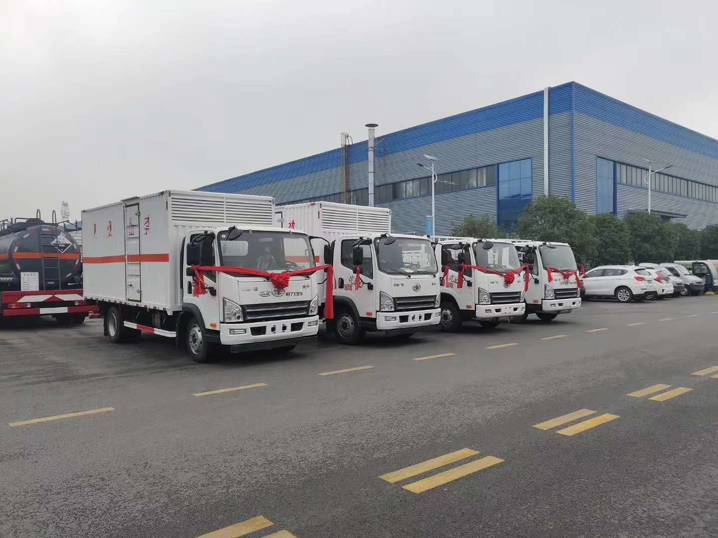 選擇危險品車哪一款好?當然少不了的是客戶用的好!貴州劉總從事液化氣瓶配送多年,因公司業務擴展,需增購四臺危險品車。根據劉總實際使用需求,程力專汽陳經理為其推薦的是解放液化氣瓶車和易燃氣體廂式運輸車。在訂車過程中,劉總提出了要定制專用瓦楞廂體。車廂前部采用透氣孔設置,便于車廂內空氣流通。想客戶所想,急客戶所及。程力專汽加班加點為其趕制了車輛,以下是具體發車實拍: