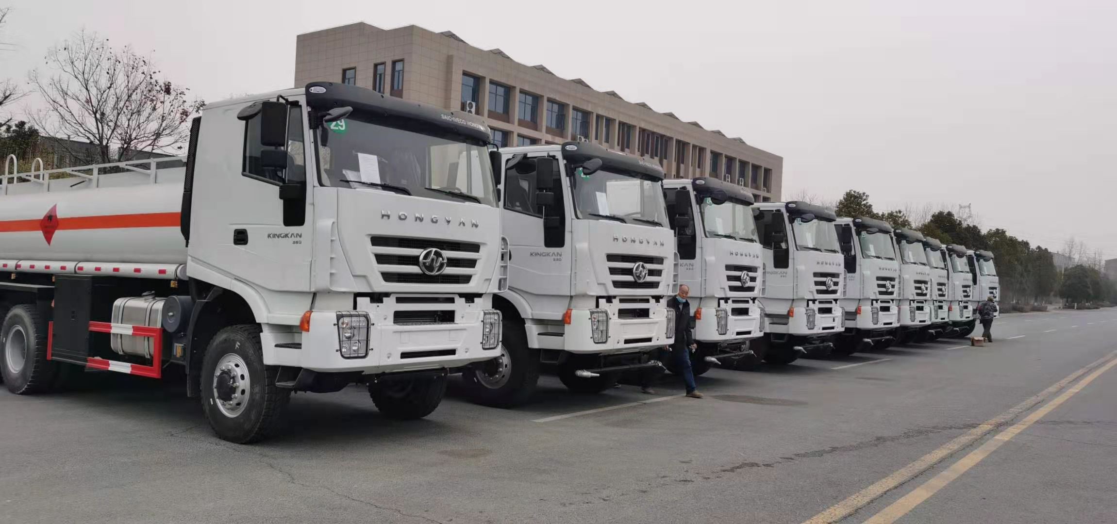油罐車一直是市場上非常熱銷的車型,無論是在哪個地方我們隨處可見的是油罐車。尤其是年底危險品運輸旺季,很多運輸公司都在增購車輛,重慶李總也不例外,在我司自提了八臺上汽紅巖油罐車,以下是具體實拍: