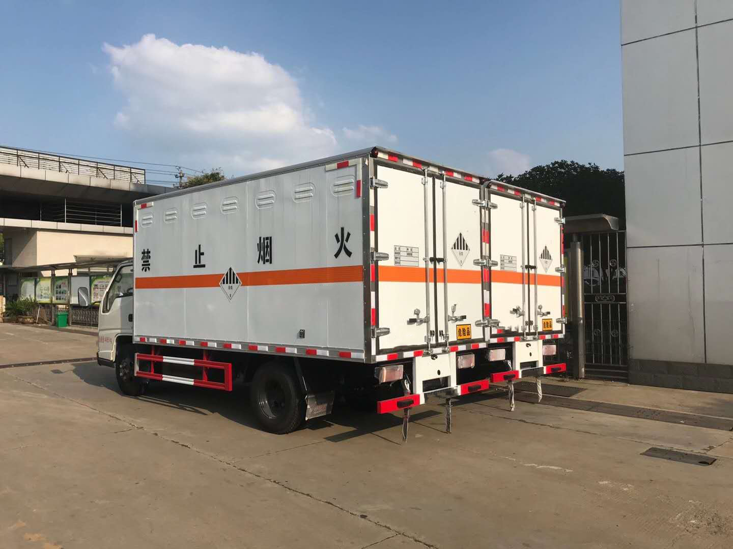 江鈴國五危險品車整車型號JHW5040TQPJX,底盤型號;JX1041TG25,發動機型號:JX493ZLQ5,原廠危險品底盤,帶動轉,整車尺寸:5995*2080*2220,貨箱內尺寸:4150*1930*600,廂體邊板為平板可活動,邊板為雙層鐵皮,廂體內部安裝便于可固定貨物的卡槽,上部帶花籃(可拆卸),中部立柱,立柱為活動式,底板為3mm鋼板上面鋪防靜電膠皮,靜電拖地帶,滅火器兩個,危險品三角頂燈,防火帽,廂體顏色白色,其他嚴格按公告制作。李總為了運輸方便,選擇了一款江鈴的氣瓶車和江鈴的危險品廂式車,兩款車型裝載貨物可自由選擇,讓您使用更便利!