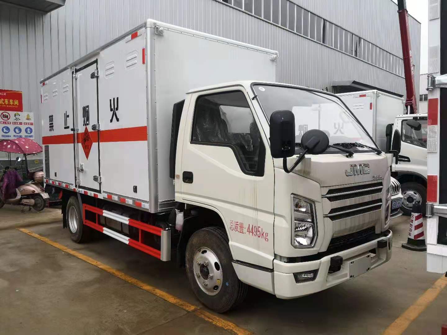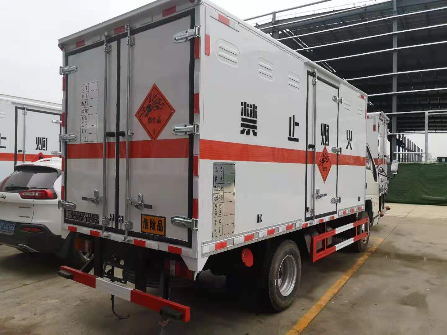 江鈴國六防爆車廂體嚴格按照公告尺寸制作,外板采用1mm厚冷軋板有一次性成型的百葉窗,內飾為導電性能良好的鋁板有透氣孔,內襯為矩形管骨架牢靠穩定,內部填充為透氣防潮阻燃的擠塑板,四種材料經現代工藝復合而成,廂體外部上下鋁合金型材包邊,底板和車廂前下部鋪橡膠皮,后門雙開,右側中部單開門,內部有固定貨物的臥環,車輛外部有靜電帶、滅火器、防火罩,車廂內安裝煙霧報警器和門防盜報警器,嚴格按照國家危險品相關法規張貼。