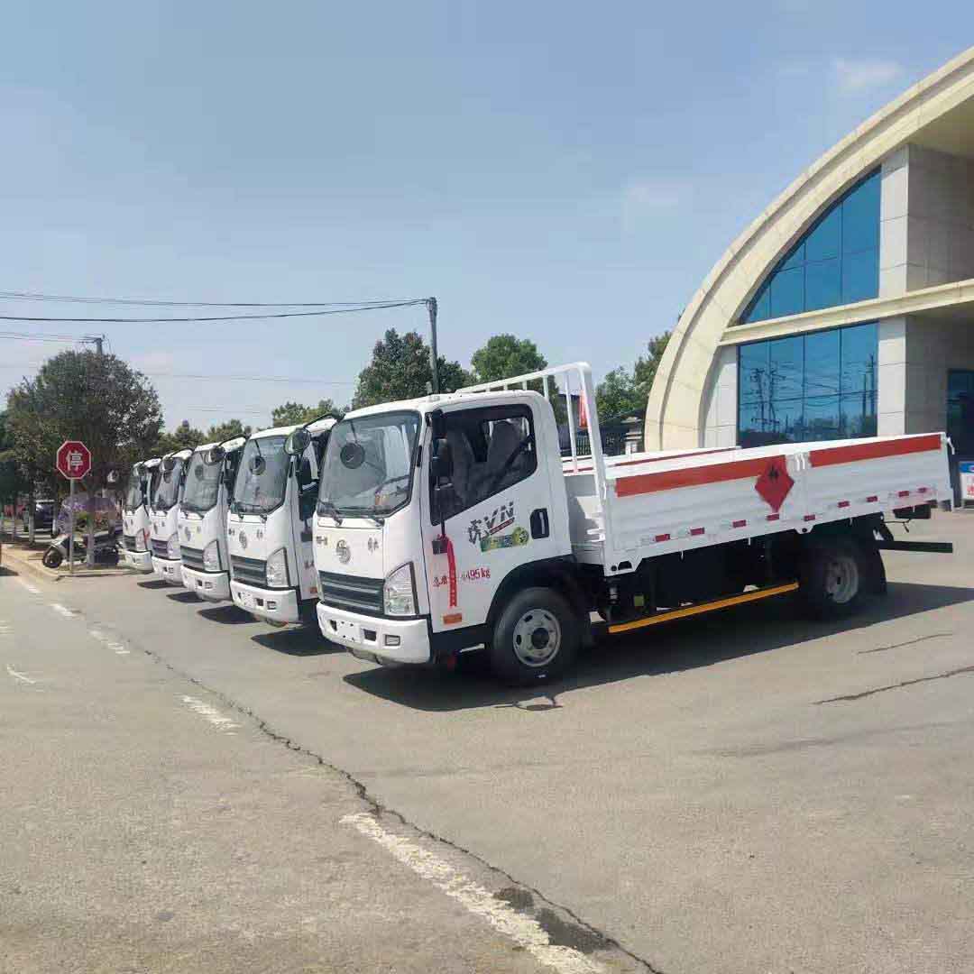 解放氣瓶運輸車貨箱可選低欄板式貨箱和可拆卸式花欄式貨箱,底板上鋪靜電膠皮,嚴格按照國家危險品法規進行“易燃氣體”標識粘貼,隨車配備手提滅火器,危險品三角頂燈,防火帽等。帶整車合格證、隨車工具、服務手冊、保修手冊。