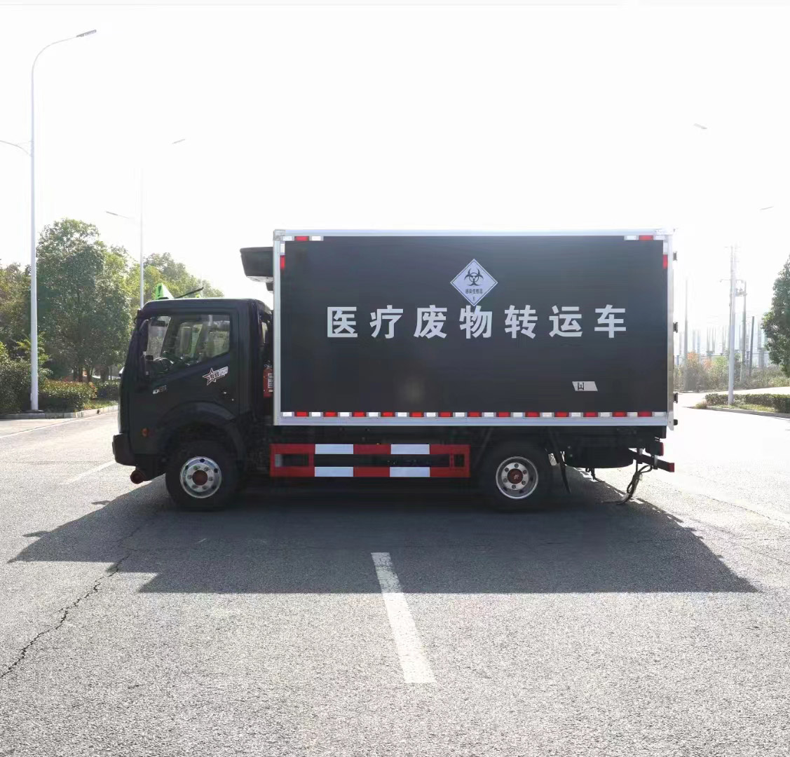 東風多利卡國六醫療廢物轉運車采用的是原廠危險品車底盤,玉柴140馬力發動機,后橋5噸,帶中控鎖、電動門窗。采用的是外飾玻璃鋼,內飾不銹鋼,中間為聚氨酯整體發泡,車廂與大梁之間采用橡膠皮廂體下方圓弧處理,后門為雙層密閉結構,并采用迷宮式封條,使車廂完全封閉。加裝自動消毒噴霧器。廂體兩側帶固定貨物卡槽。車廂體內裝配紫外線消毒殺菌設備。醫療廢物轉運車采用帶有“醫療廢物”標識。國產-5度漢雪機組。