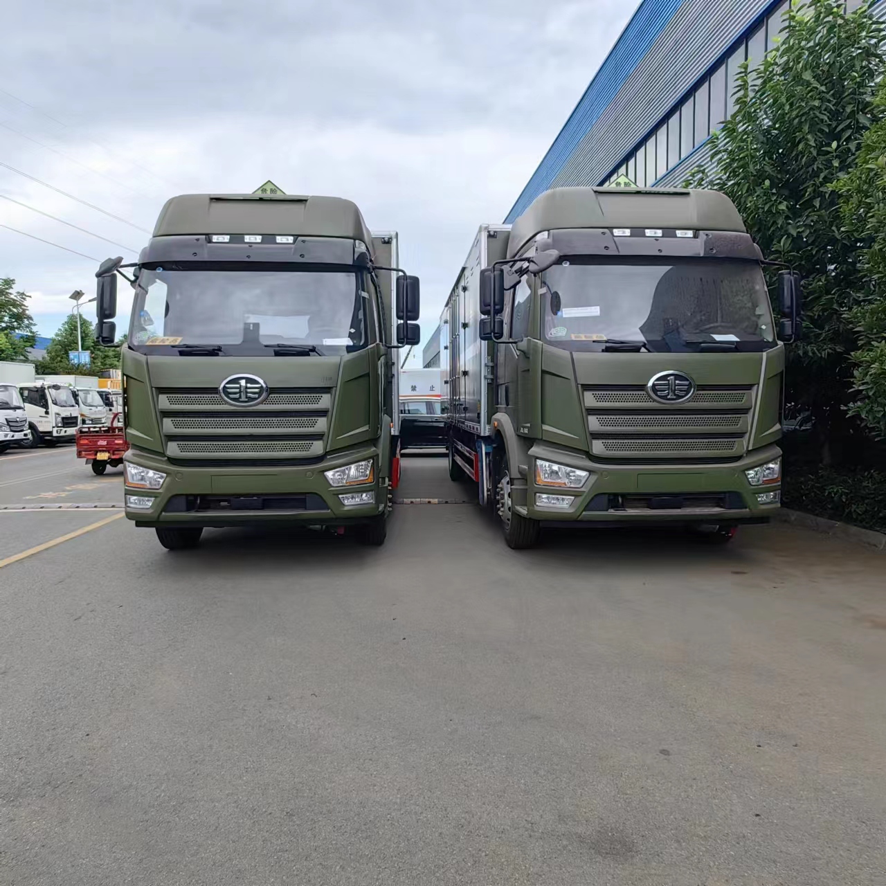 解放J6L國六高頂雙臥軍綠色240馬力爆破車采用的是專用的危險品車底盤,匹配的是中控鎖、電動門窗、原廠空調,需要區分的是該車配的是高頂雙臥,司機駕駛員休息都方便,采用的是統一的車身顏色,管理更規范。J6L精致版全浮平頂排半駕駛室(選裝高頂雙臥)。都說解放J6L是目前解放的高端系列,匹配有液晶儀表、電動玻璃升降、電動后視鏡、側圍網兜、后圍窗簾導軌、全景窗簾導軌、頭頂放物盒、駕駛員座椅為空氣減振座椅、中間座椅、單DIN北斗兼容車載系統、電源總開關控制開關,大柴CA6DH1-24E61(EGR+DOC+DPF+SCR氣驅、發動機制動),ф395離合器,變速箱CA8TAX090F變速器,240PS,車橋ф378沖焊橋(進口ABS、1878輪距),275/80R22.5型18層級無內胎,新F4N-1900前軸,速比:4.875,其他:237×75×6.5,自動空調、前下防護裝置、VOSS管路及接頭、300L鋁油箱、電子手油門、一體式金屬寬體保險杠、電動液壓舉升、限速79km/h、排氣火花熄滅器、整車配備靜電拖地帶1根、駕駛室帶2kg干粉滅火器1個、排氣尾管及消聲器前置、前盤后楔式制動器、懸架3/-(4氣囊、電控ECAS)、安全帶佩戴提醒、制動器襯片更換報警、爆胎應急安全裝置、U型后處理、EBS(電控制動系統)、ESC(電子穩定性控制)、單胎帶TPMS(胎壓監測)、鋁貯氣筒、LDW(車道偏離報警)、FCW(前碰預警)、車身左側帶“精致版”字樣、U型后處理、T-box1.5、排氣節流閥、AEBS(自動緊急制動),后懸架升級加強。