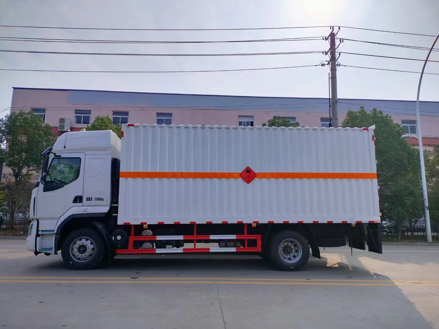 柳汽國六10噸瓦楞板危險品車選用瓦楞板箱體,扎實更耐用。底板和車廂前下部鋪橡膠皮,后門雙開,選裝側(cè)開門,內(nèi)部有固定貨物的臥環(huán),車輛外部有靜電帶、滅火器、防火罩。車廂內(nèi)安裝煙霧報警器和門防盜報警器,嚴格按照國家危險品相關(guān)法規(guī)張貼危險品標識和反光標志等