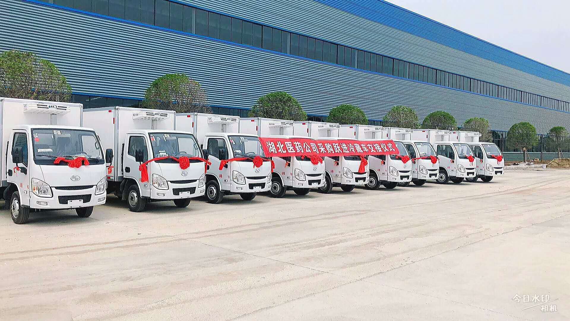 熱烈祝賀湖北醫藥公司批量采購上汽躍進小福星冷藏車首批十臺順利交接,第二批十臺正在全力生產中!躍進小福星冷藏車采用云內95馬力發動機,2650軸距或者2800軸距,2噸后橋,油剎(前碟后鼓),手動玻璃門窗,方向助力,前盤制動,電熄火,前霧燈,前后減震。