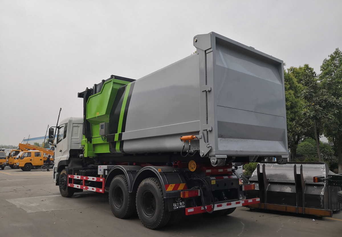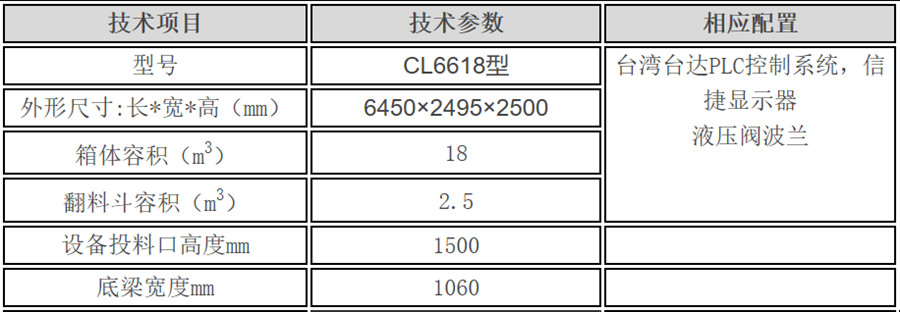 移動式壓縮垃圾箱參數:廂體有效容積18立方,外接380V三相四線交流電源,車廂尾部采用液壓快速接頭,通過底盤部分提供系統壓力以帶動車輛尾門的關合。