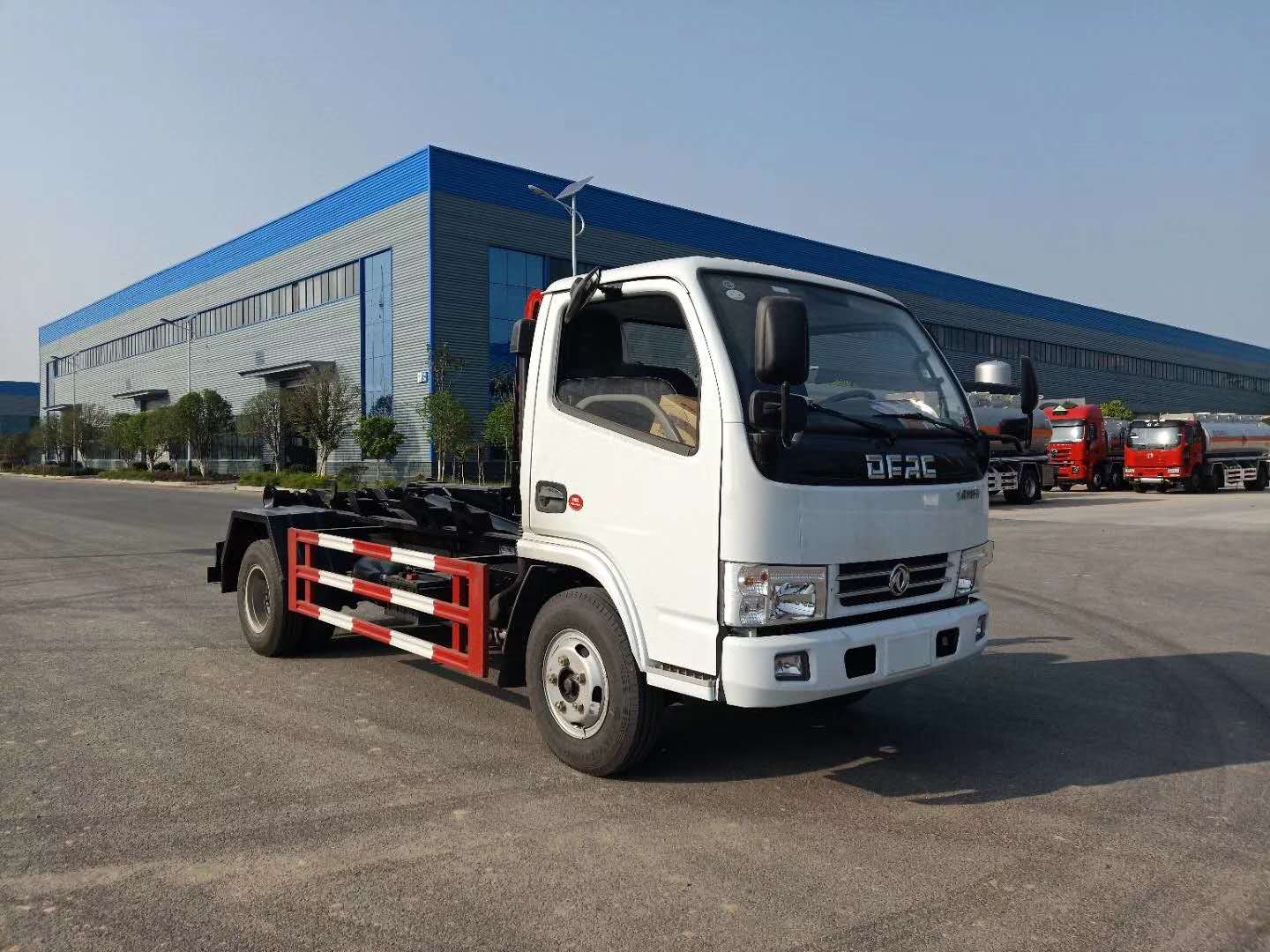 勾臂式垃圾車可將地下垃圾箱內的垃圾及垃圾箱一同拉至車上運走同時可自卸,且垃圾箱體采用液壓鎖緊或開啟,降 低了工人的勞動強度和改善了工作環境。該垃圾車的收運方式是目前世界上廣泛采用的垃圾收運方式,可以實現一車多箱,大大降低了配備成本和空間等等;其專用裝置的功能均以汽車發動機為動力,通過液壓機構手動或電控、氣控來實現。