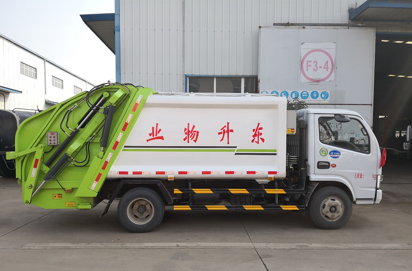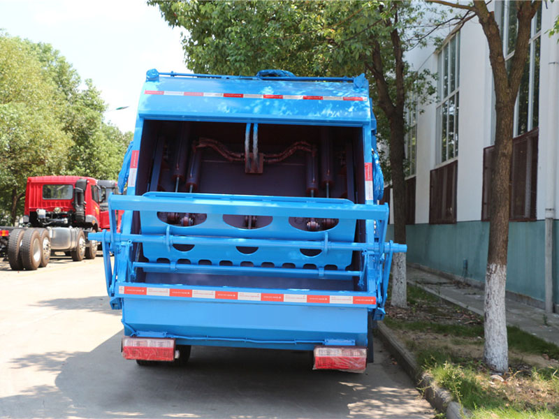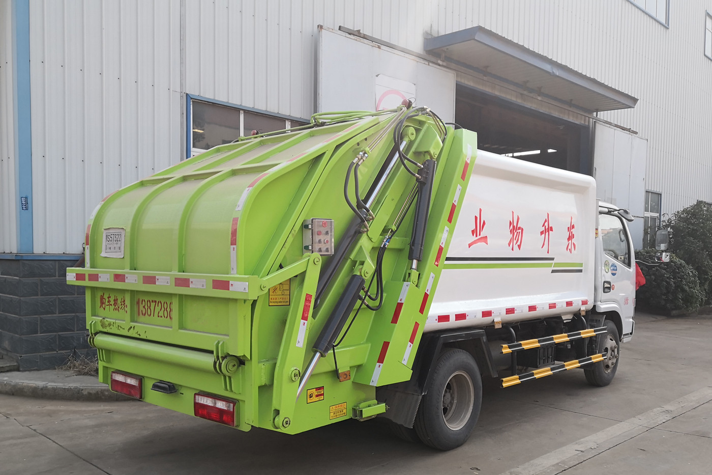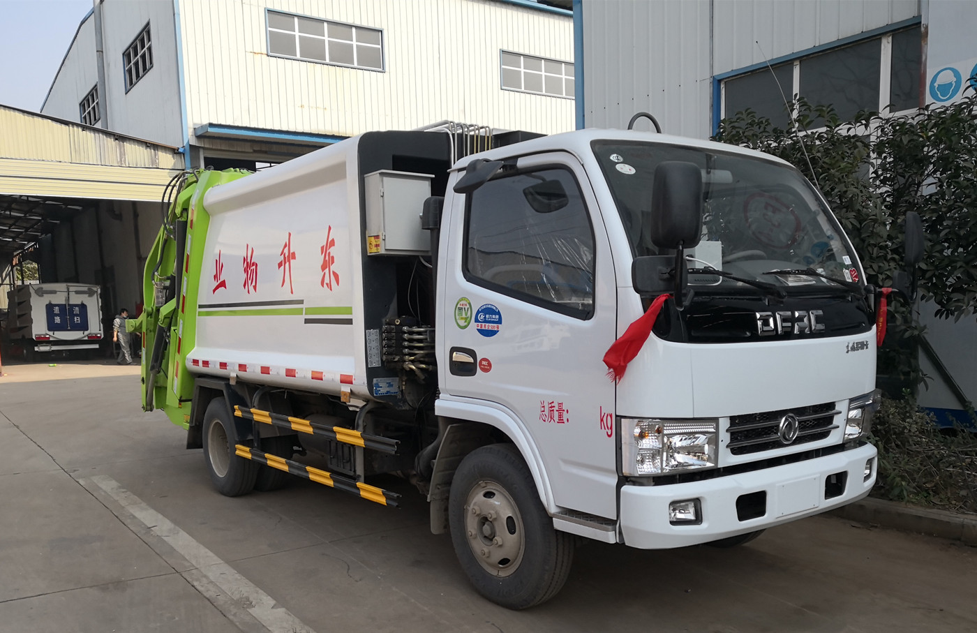 壓縮式垃圾車采用機電液一體化技術(shù),借助機、電、液聯(lián)合自動控制系統(tǒng),通過車廂、填裝器和推鏟等專用裝置,實現(xiàn)垃圾倒入、壓碎或壓扁、強力裝填,把垃圾擠入車廂并壓實和推卸。其主要特點是垃圾收集方式簡便、高效、具有自動反復壓縮以及蠕動壓縮功能,壓縮比高,裝載質(zhì)量大,作業(yè)自動化,動力性、環(huán)保性好,整車利用效率高。