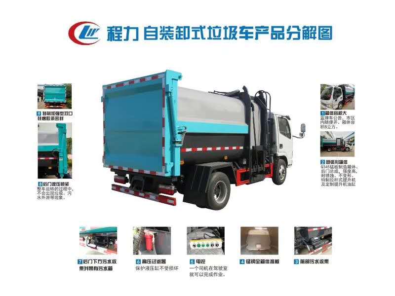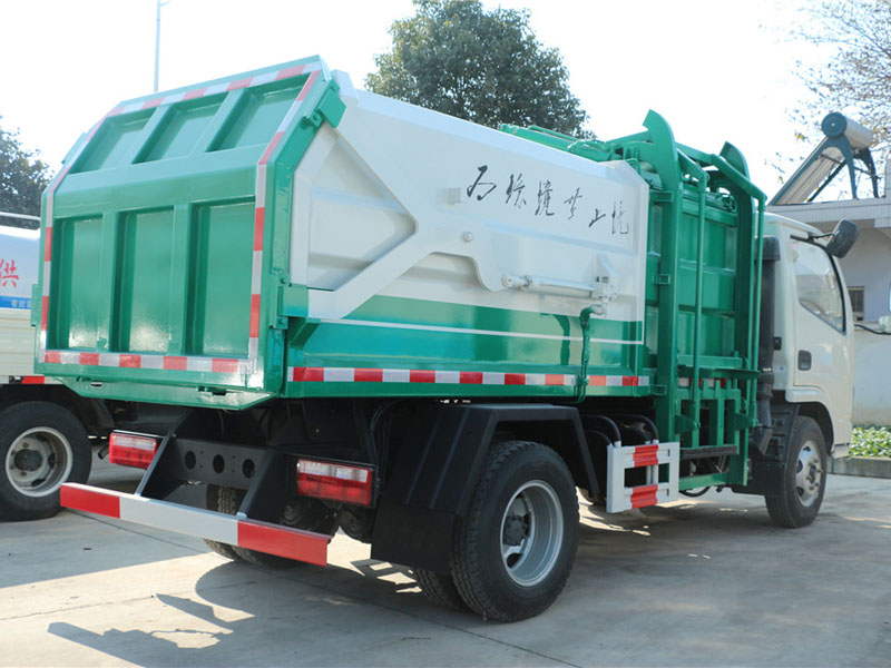壓縮式垃圾車采用機電液一體化技術,借助機、電、液聯合自動控制系統,通過車廂、填裝器和推鏟等專用裝置,實現垃圾倒入、壓碎或壓扁、強力裝填,把垃圾擠入車廂并壓實和推卸。其主要特點是垃圾收集方式簡便、高效、具有自動反復壓縮以及蠕動壓縮功能,壓縮比高,裝載質量大,作業自動化,動力性、環保性好,整車利用效率高。