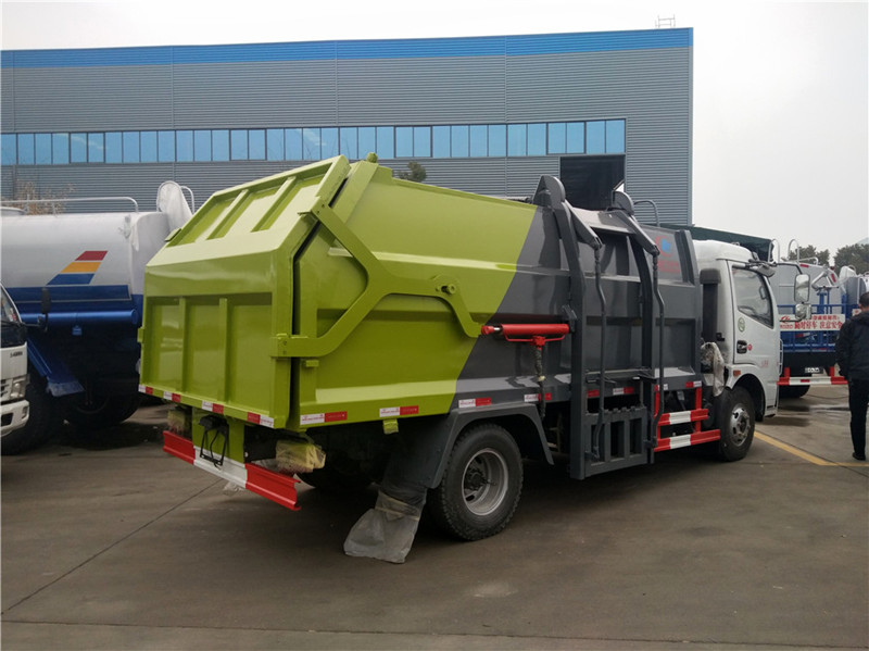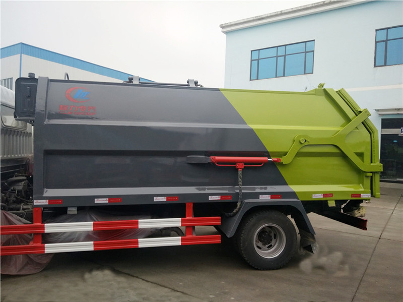 壓縮式垃圾車采用機電液一體化技術,借助機、電、液聯合自動控制系統,通過車廂、填裝器和推鏟等專用裝置,實現垃圾倒入、壓碎或壓扁、強力裝填,把垃圾擠入車廂并壓實和推卸。其主要特點是垃圾收集方式簡便、高效、具有自動反復壓縮以及蠕動壓縮功能,壓縮比高,裝載質量大,作業自動化,動力性、環保性好,整車利用效率高。