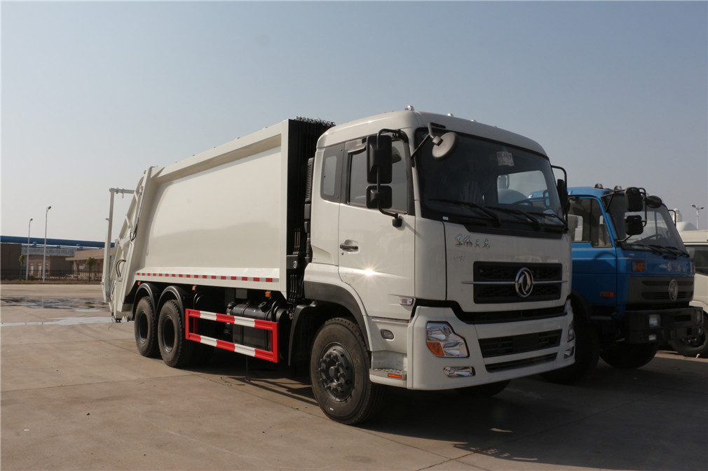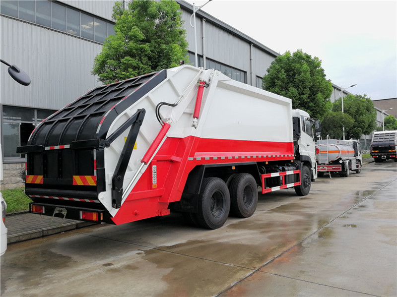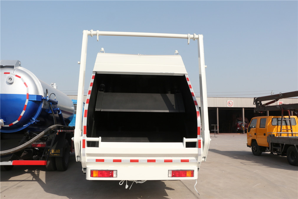 壓縮式垃圾車采用機電液一體化技術,借助機、電、液聯合自動控制系統,通過車廂、填裝器和推鏟等專用裝置,實現垃圾倒入、壓碎或壓扁、強力裝填,把垃圾擠入車廂并壓實和推卸。其主要特點是垃圾收集方式簡便、高效、具有自動反復壓縮以及蠕動壓縮功能,壓縮比高,裝載質量大,作業自動化,動力性、環保性好,整車利用效率高。