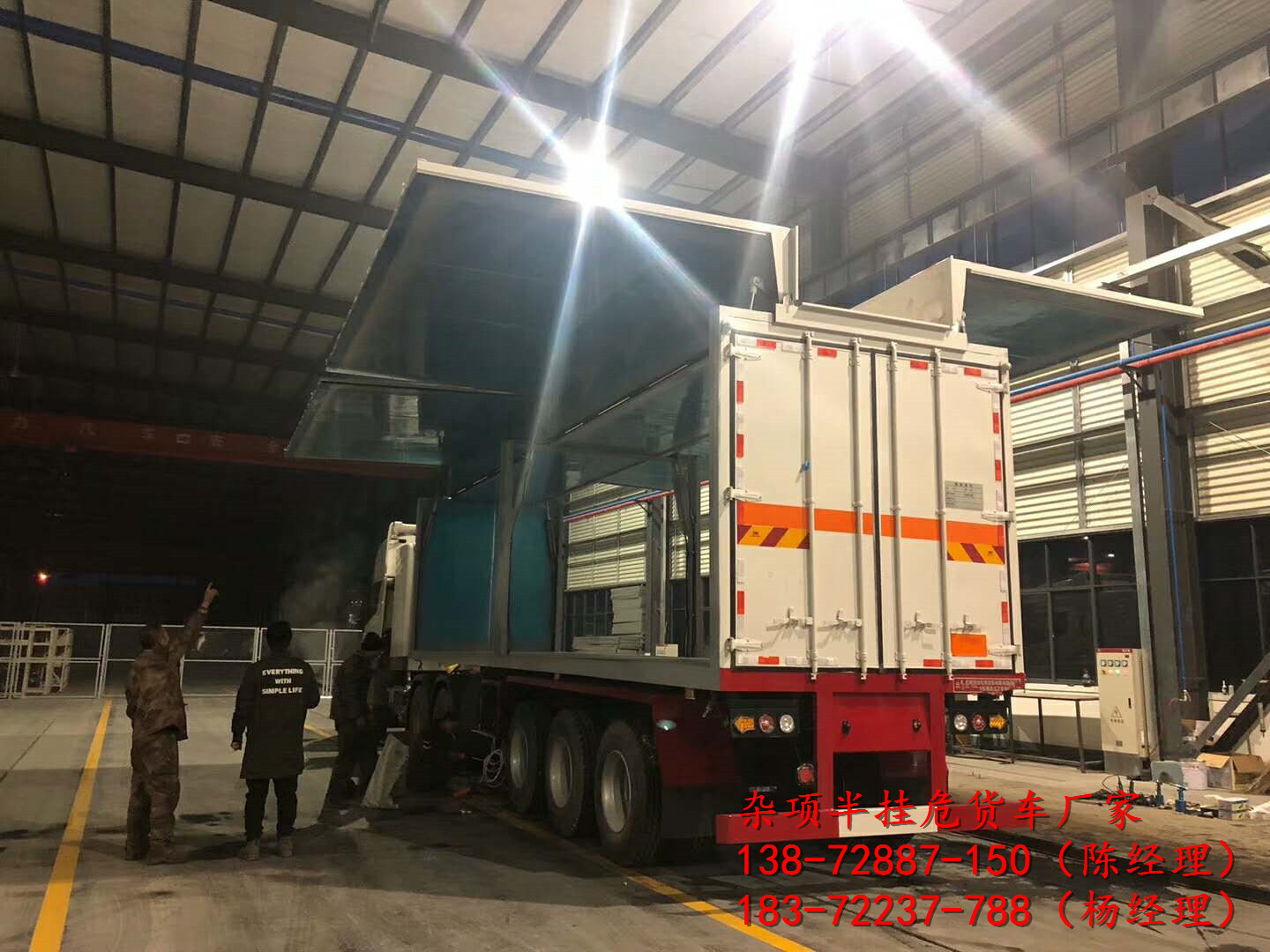 九類雜項帶翼展半掛危險品廂式車哪里有?很多危險品運輸公司隨著業(yè)務(wù)逐漸擴大,對危險品車輛的需求也越來越多。目前生產(chǎn)九類雜項帶翼展半掛危險品廂式車的廠家很少,程力專汽擁有生產(chǎn)該類車型的相關(guān)資質(zhì),日前很多客戶已來我司訂購此車!以下是實車展示圖片: