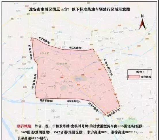 全天禁止國三(含)標準以下柴油車輛通行。外省、區、市核發號牌(含臨時號牌)的過境重型貨車由205國道(繞城段)、343國道(淮陰區段)、247省道(淮陰區段)、京滬高速(G2)、淮徐高速(G2513)、長深高速(G25)繞行。據悉,由于淮安市市油品的不斷升級,通告中所涉及的國三(含)以下柴油車,主要包括2013年以前購買的重型、中型、輕型、微型柴油貨車及三輪汽車、低速貨車、農用車。