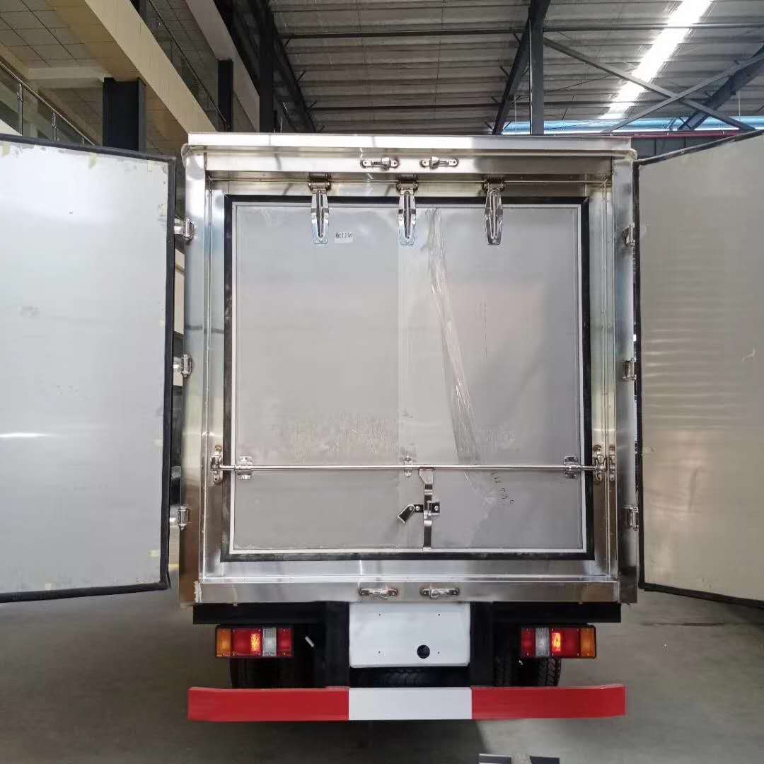 新工藝醫療廢物轉運車采用危險品車專用底盤、排氣管前置、前盤后鼓,帶安全帶未系提醒、剎車襯片預警、防爆胎裝置,符合2020年新規,廂體外板CFRT新材料,內板不銹鋼,加裝紫外線消毒殺菌裝置,殺毒噴霧裝置,不銹鋼封閉內掀門。
