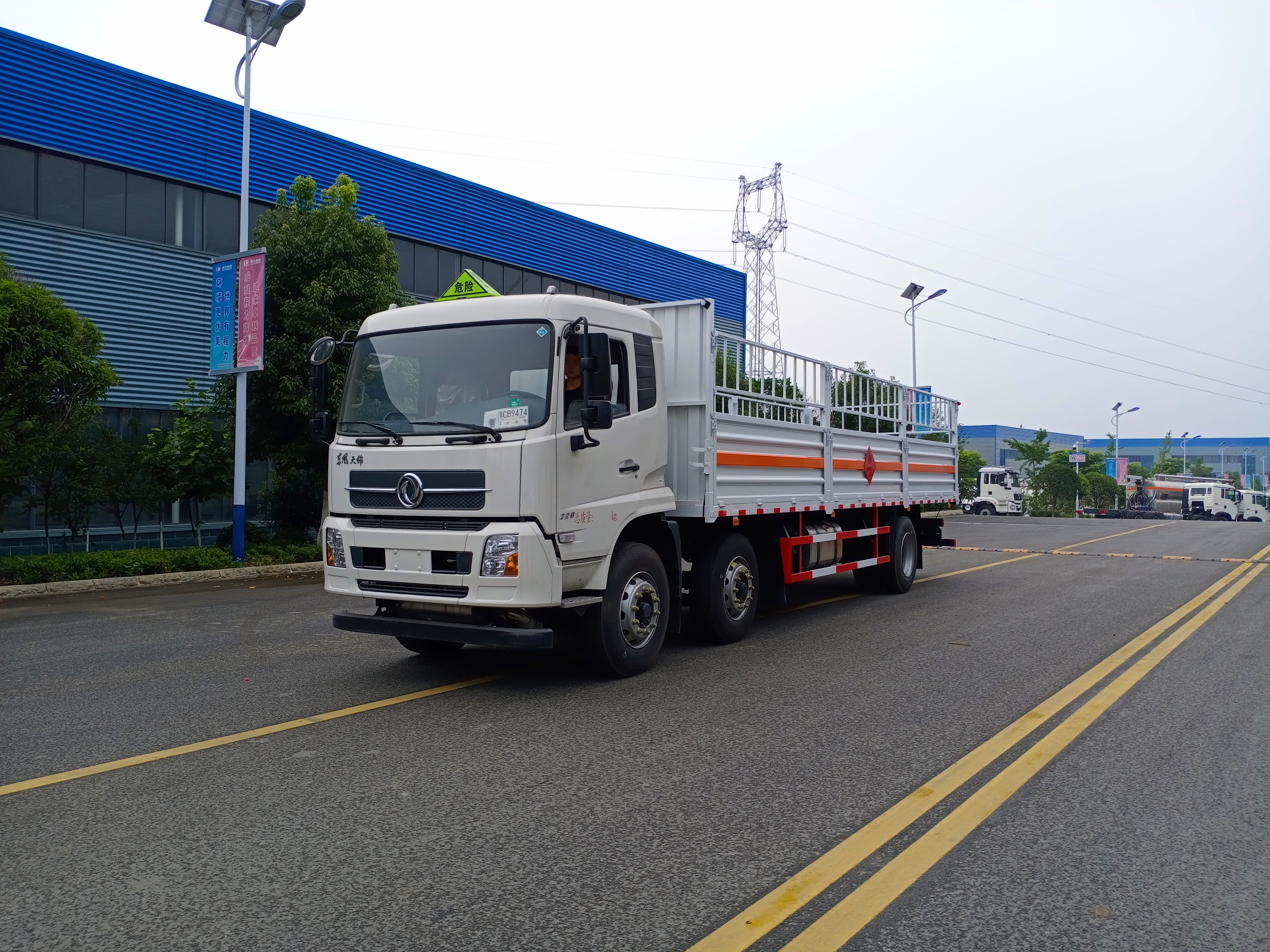 東風天錦小三軸氣瓶運輸車嚴格按照公告尺寸制作,邊2底4材質,底板上鋪靜電膠皮,側板平板內置臥環,側板上帶可卸式高欄,配備滅火器,三角頂燈,靜電拖帶等,嚴格按照國家危險品法規進行“易燃氣體”標識粘貼等。