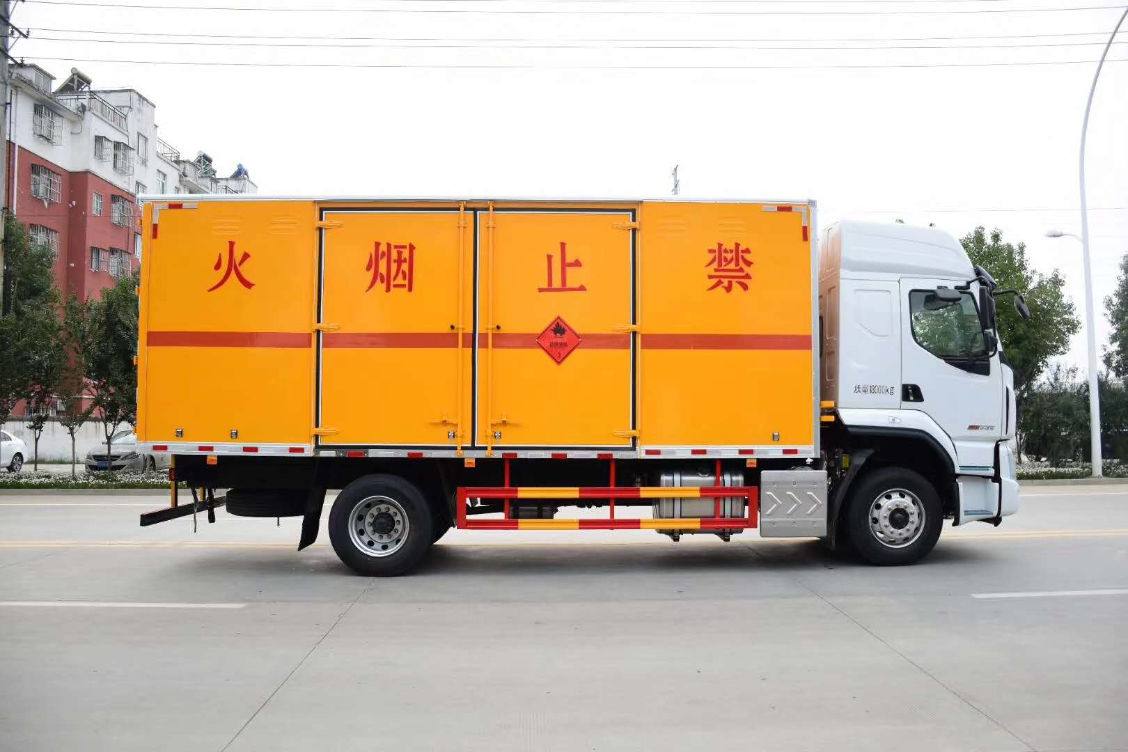 3)危險品運輸需專車專用,車輛運輸分為1-9類,每一個類別設計的車型不一樣。根據客戶運輸的介質不一樣可選倉欄式、廂式、罐式。