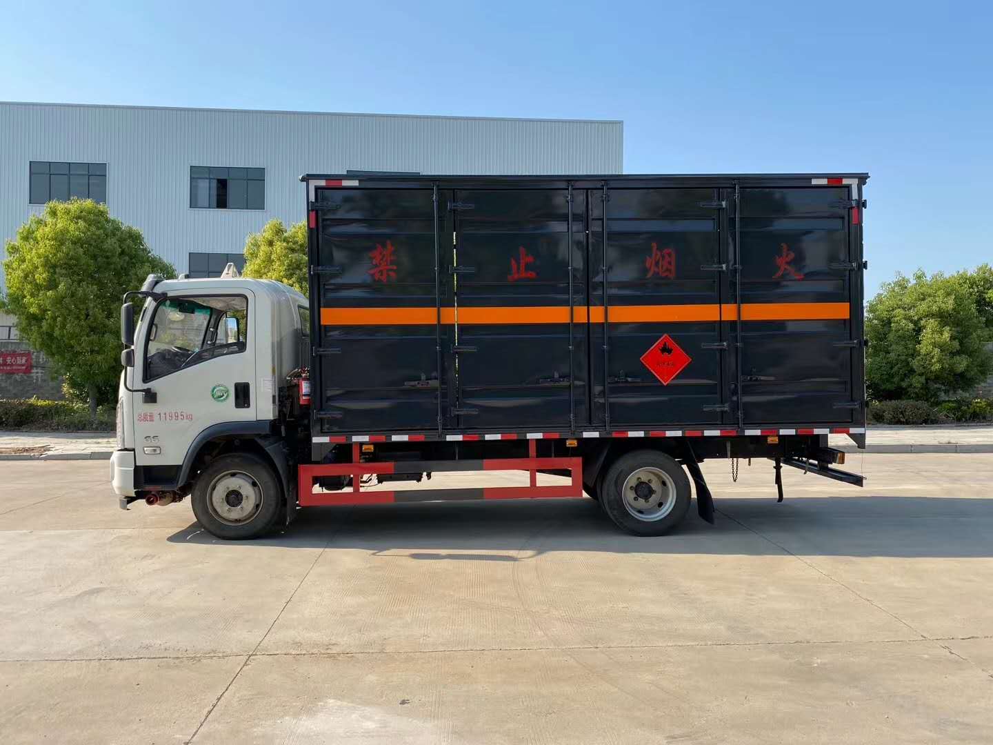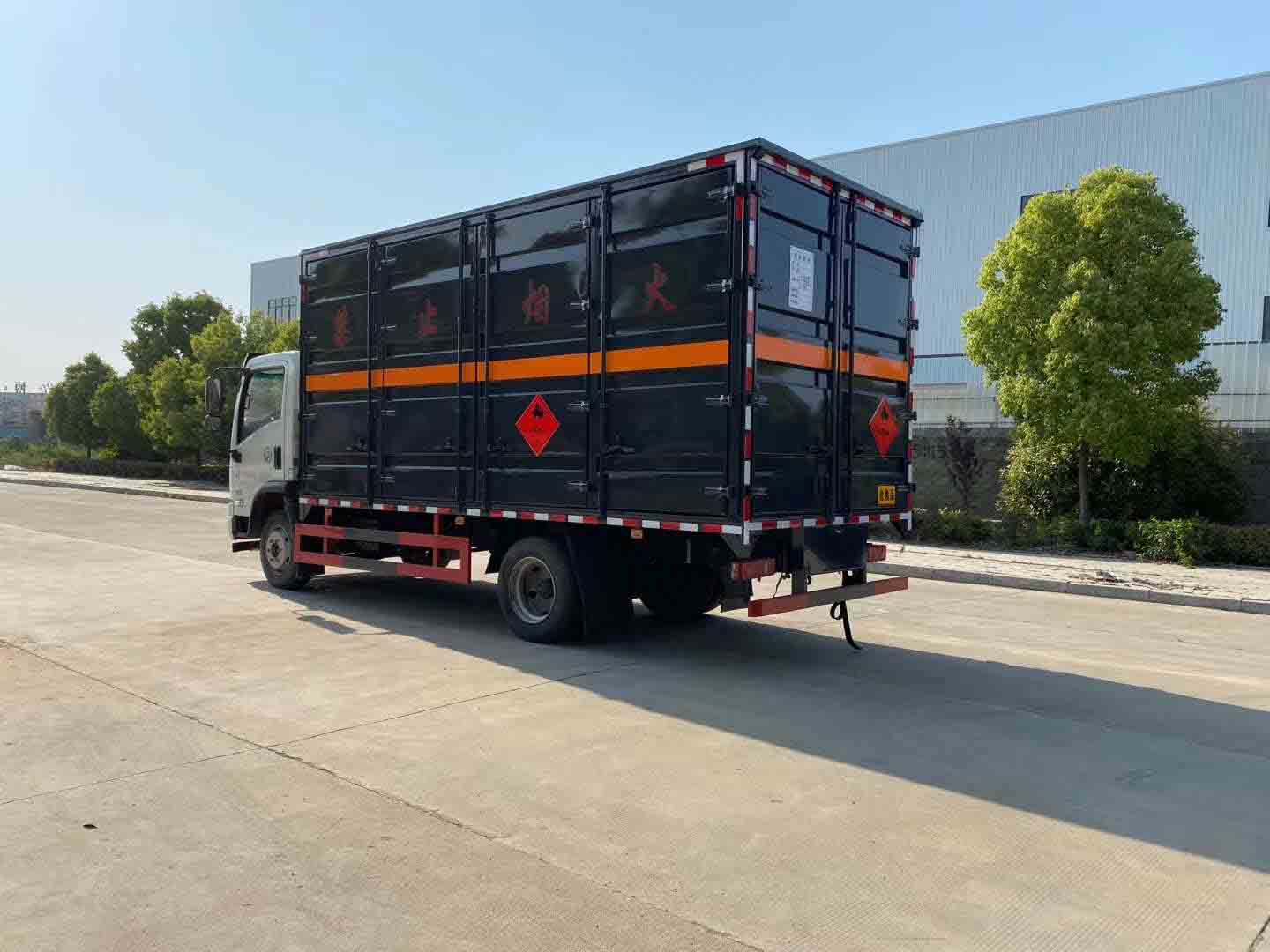 大運國六易燃液體廂式運輸車外形尺寸7250*2420*3290/3490mm,內部尺寸5150/4850*2320/2100*600mm.外板采用1.2MM厚冷軋板有一次沖壓成型的百葉窗,內飾為良好的的鋁板有透氣孔,內襯為矩形管骨架牢靠穩定,內部填充為透氣防潮阻燃的擠塑板,四種材料經過良好的現代工藝復合而成。內部有固定貨物的防撞護板,該車配有車載專用煙霧報警器及后門防撞器,有靜電帶,滅火器,防火罩。