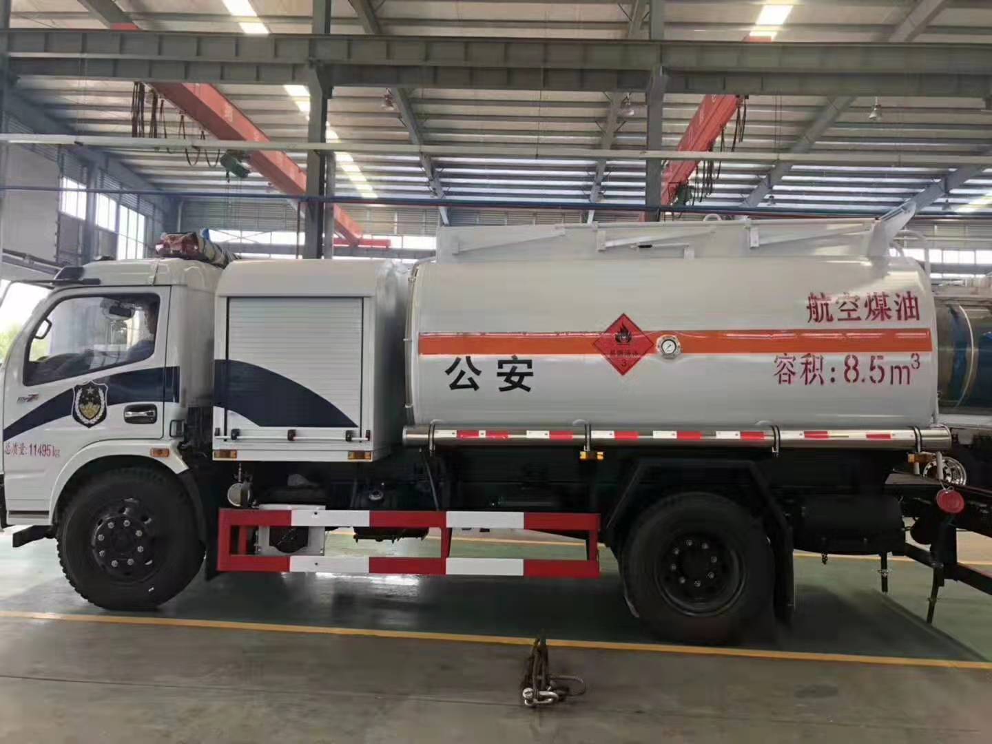 備注:1.該車適用于危險品運輸。運輸介質:汽油,航空煤油,罐體有效容積8.5立方米,罐體外形尺寸