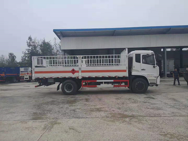 東風天錦帶液壓尾板氣瓶運輸車除了做高倉欄式氣瓶車外,還可做程欄板貨箱式,廂體為欄板開放式結構,廂體深度一般為50cm,廂體材質為冷軋鋼板板,廂體側面及尾部可翻轉打開,適用于裳跗瓶、二氧化碳氣瓶等臥式氣瓶運輸。
