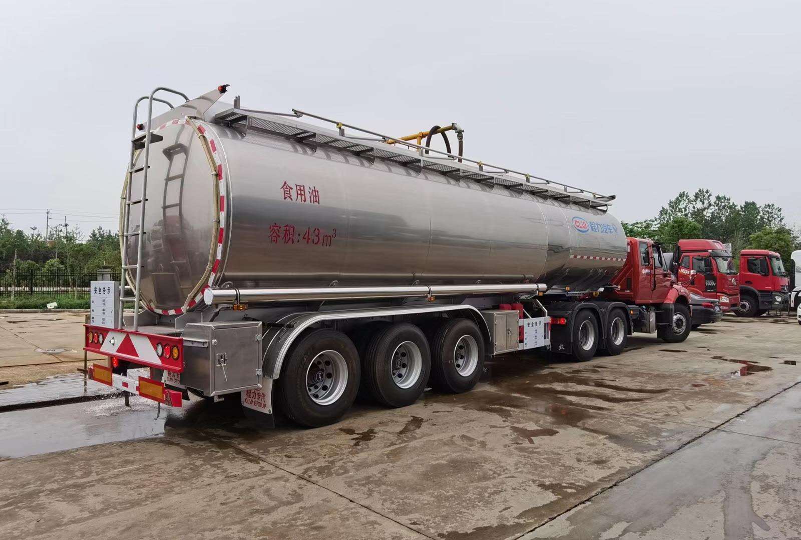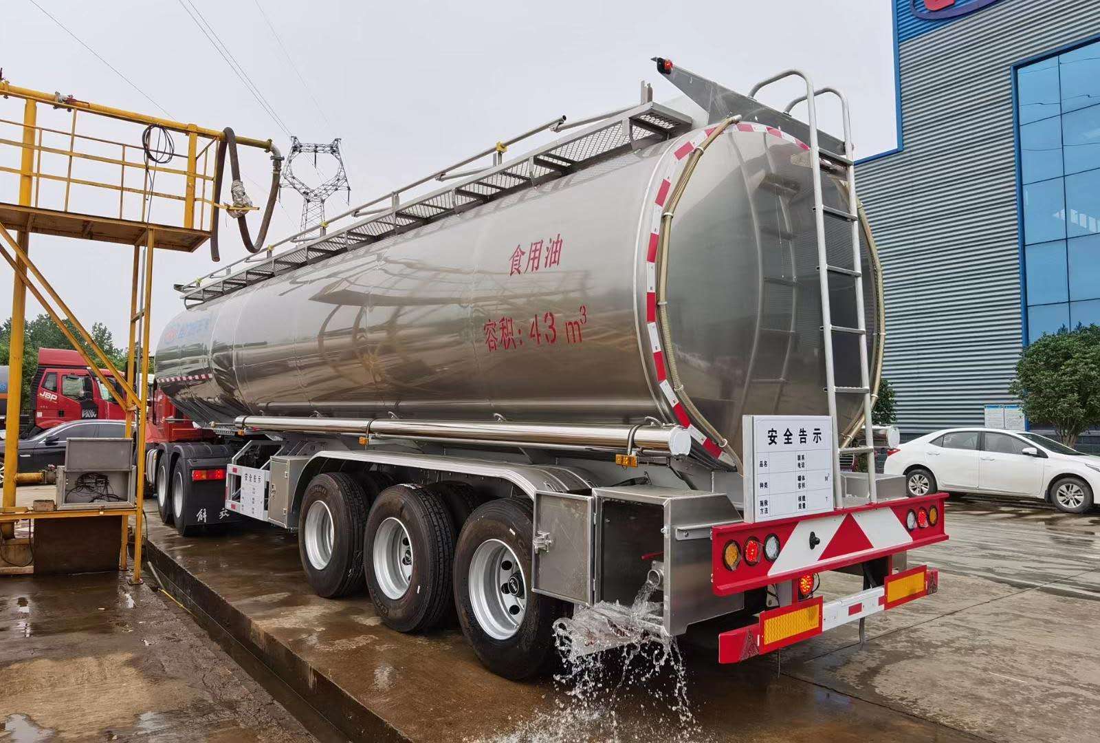 鋁合金運(yùn)油半掛運(yùn)輸車壹臺(tái),整車型號(hào)CLW9407GYYLV,公告容積:41.6,罐體有效容積:42立方,5182鋁合金板材,罐體6個(gè)厚,封頭6個(gè)厚,隔板5個(gè)厚,單倉(cāng)帶壹套下裝,帶壹個(gè)智能海底閥,帶兩個(gè)歐標(biāo)罐口,12噸廣東富華橋帶盤式制動(dòng),12.00R22.5成山真空胎,富華空氣懸掛,帶ABS,90牽引銷,28噸支腿,前后爬梯,其他按廠標(biāo)。