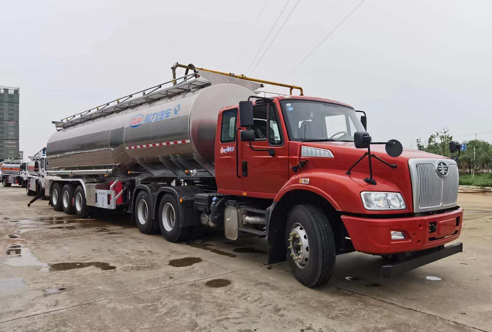 一汽解放尖頭牽引車帶鋁合金半掛油車看起來(lái)像極老爺車,給人不一樣的體驗(yàn)感!河北吳總在我司訂購(gòu)的牽引頭帶鋁合金半掛油車已完工,以下是具體實(shí)拍: