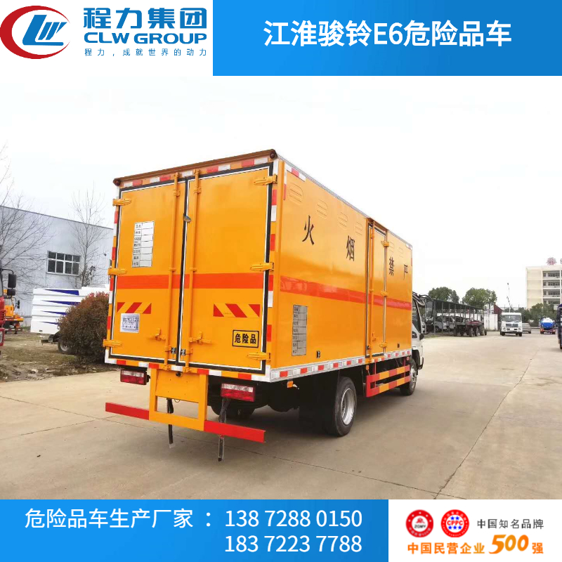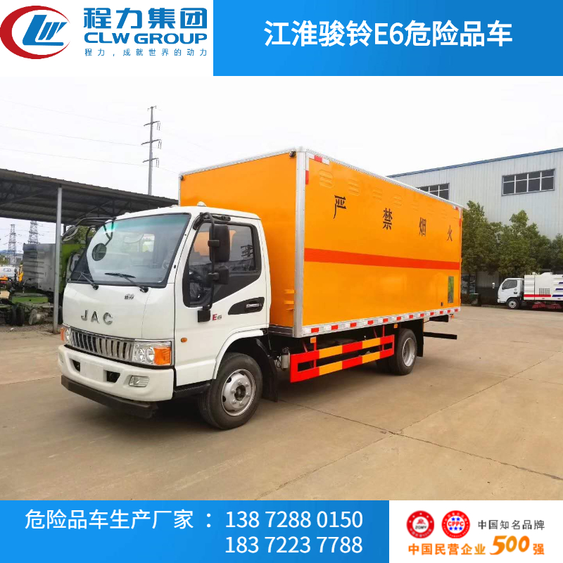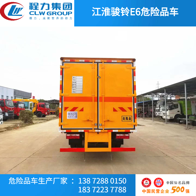 江淮E6危險品車配備滅火器,三角頂燈,靜電拖帶等,嚴(yán)格按照國家危險品法規(guī)進(jìn)行危險品標(biāo)識粘貼。目前底盤已到現(xiàn)貨,歡迎各新老客戶來電咨詢訂購!