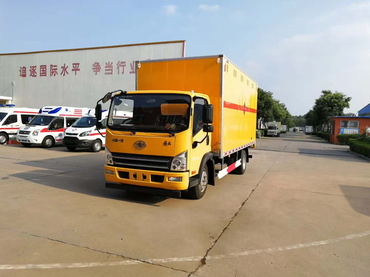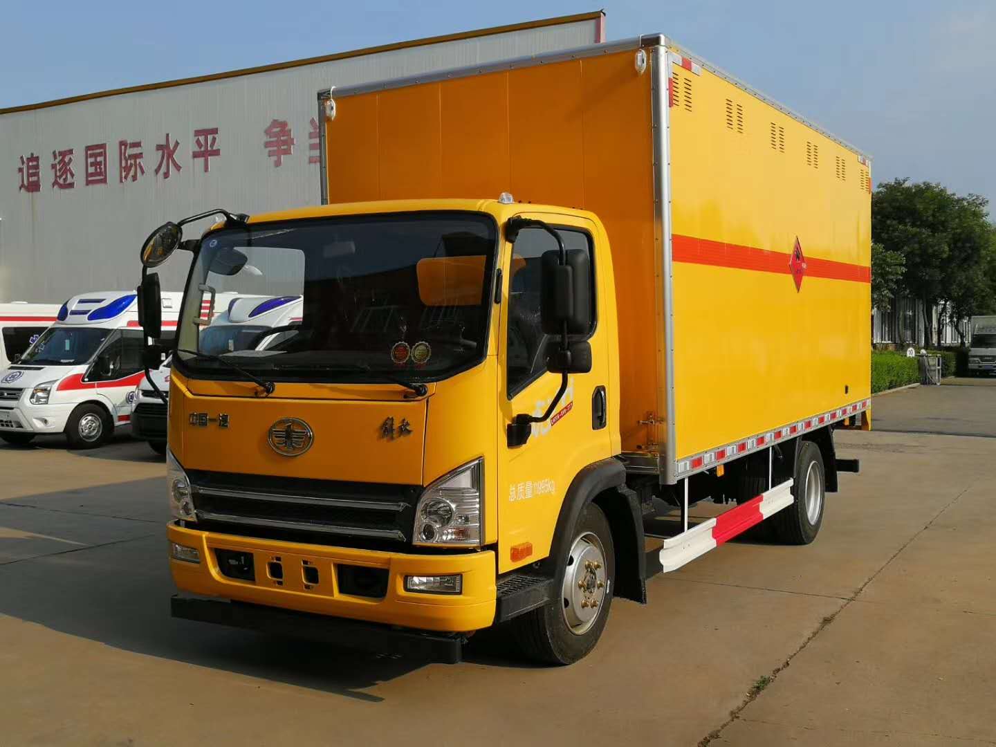 隨著危險品車的不斷普及,很多客戶為了區分自己的車型,都會定制不同顏色的車。根據客戶愛好會定制整車一個顏色或者車廂和車頭顏色區分。今天為您推薦的是解放整車黃易燃氣體廂式運輸車,詳細配置如下:
