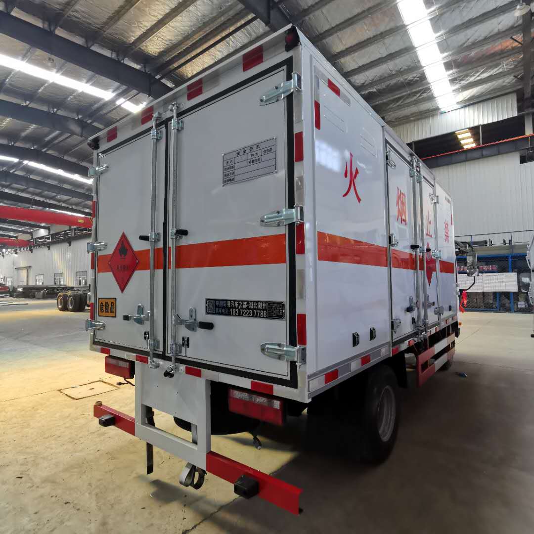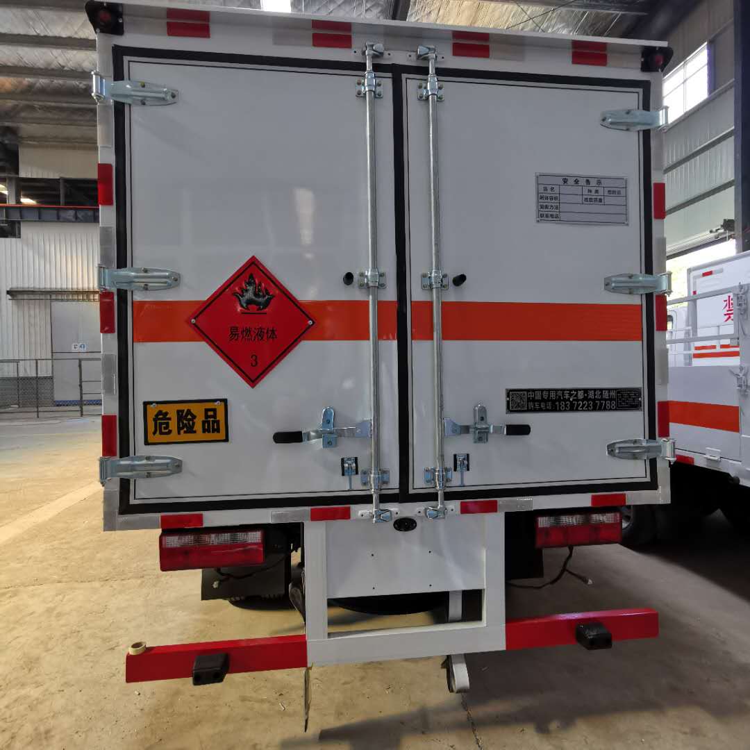 上裝配置:外板采用1.2MM厚冷軋板有一次沖壓成型的百葉窗,內飾為導電性能良好的鋁板有透氣孔,內襯為矩形管骨架牢靠穩定,內部填充為透氣防潮阻燃的擠塑板,四種材料經過現代工藝復合而成。內部有固定貨物的防撞護板,該車配有車載專用煙霧報警器及后門防盜器,有靜電帶、滅火器、防火罩。整車國標反光標示及警告標志。