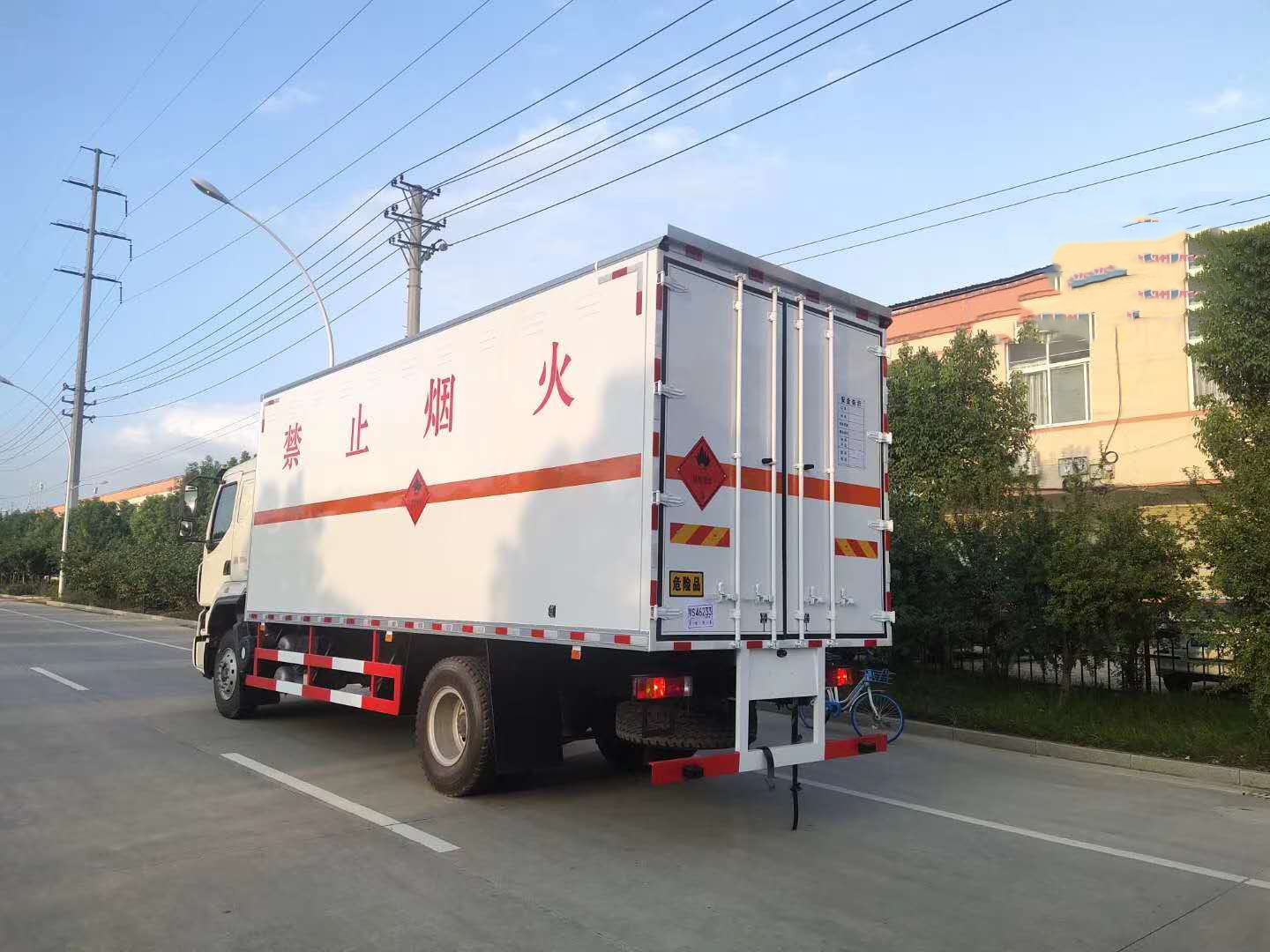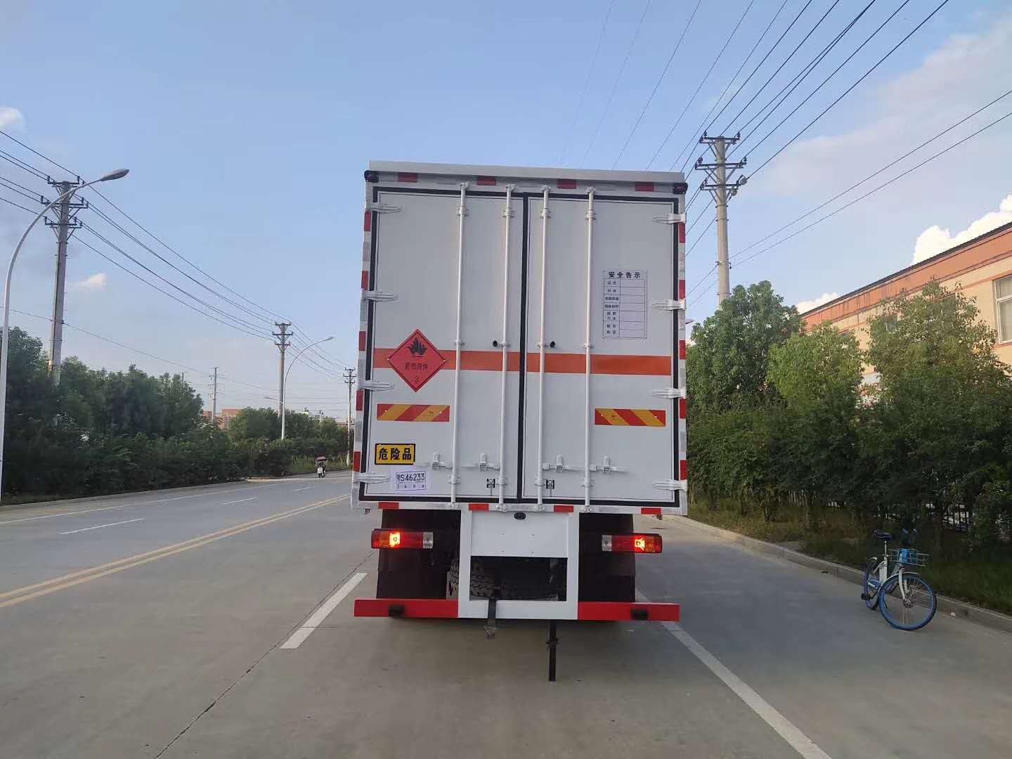 柳汽乘龍國六新規(guī)危險(xiǎn)品車整車尺寸:9000×?2550×3600;廂體尺寸:6600×2420×2200 ,嚴(yán)格按照公告尺寸制作,外板采用1mm厚冷軋板有一次性成型的百葉窗,內(nèi)飾為導(dǎo)電性能良好的鋁板有透氣孔,內(nèi)襯為矩形管骨架牢靠穩(wěn)定,內(nèi)部填充為透氣防潮阻燃的擠塑板,四種材料經(jīng)現(xiàn)代工藝復(fù)合而成,廂體外部上下鋁合金型材包邊,底板和車廂前下部鋪橡膠皮,后門雙開,右側(cè)中部雙開門,內(nèi)部有固定貨物的臥環(huán),車輛外部有靜電帶、滅火器、防火罩,車廂內(nèi)安裝煙霧報(bào)警器和門防盜報(bào)警器,嚴(yán)格按照國家危險(xiǎn)品相關(guān)法規(guī)張貼。