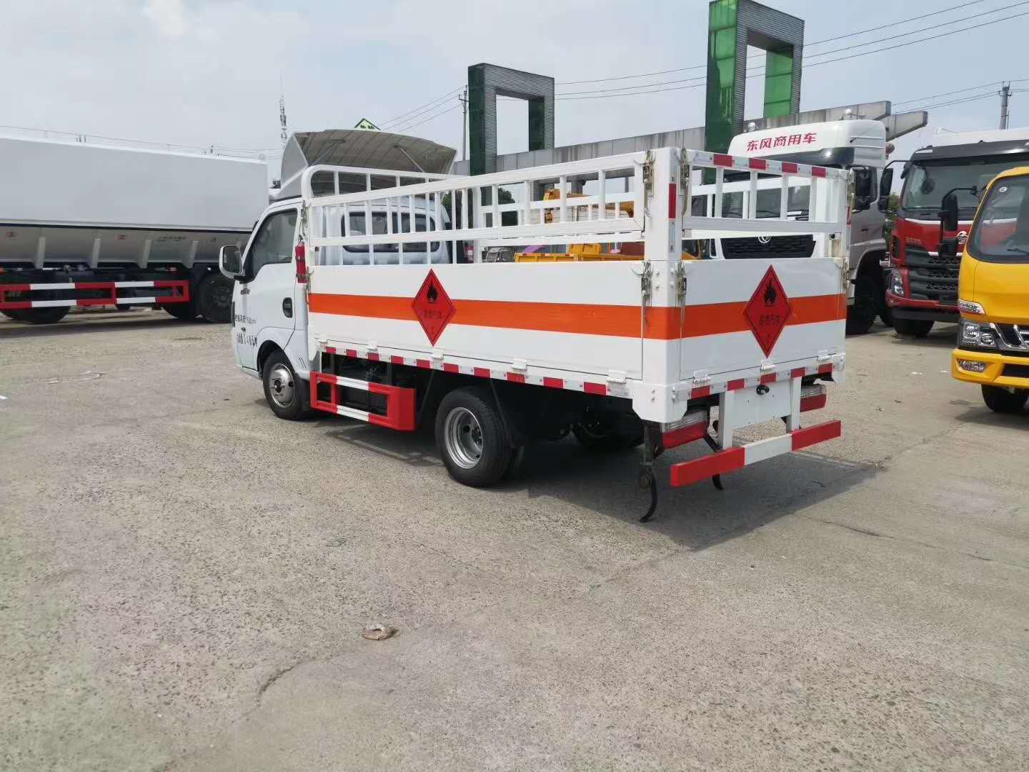 東風途逸國六藍牌氣瓶運輸車嚴格按照公告尺寸制作,邊2底3材質,帶可卸式高欄,底板上鋪靜電膠皮,配備滅火器,三角頂燈,靜電拖帶等,嚴格按照國家危險品法規進行“易燃氣體”標識粘貼等。