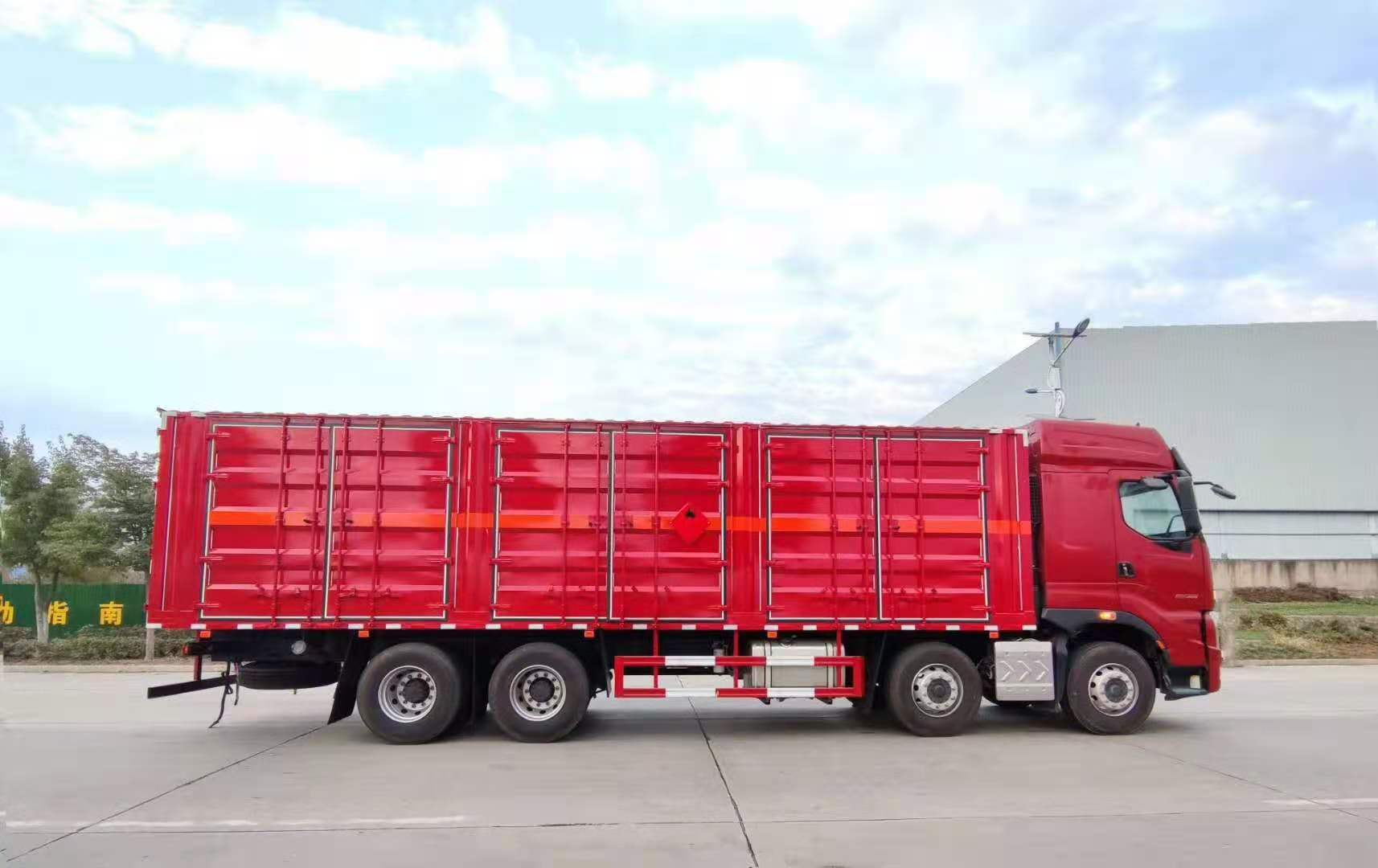 柳汽四軸瓦楞板危險品廂式運輸車采用H73D駕駛室,軸距2050+4400+1350,玉柴400馬力發動機,12R22.5胎,12檔變速箱,400L鋁合金油箱,電動液壓翻轉、ABS、中控鎖、自動調整臂前置排氣管、前輪防爆胎裝置、排氣火花熄滅器、ECU限速裝置(限速80km/h)、駕駛室電源總開關,整車尺寸:11980×2550×3980mm;廂體尺寸9500×2420×2500mm。