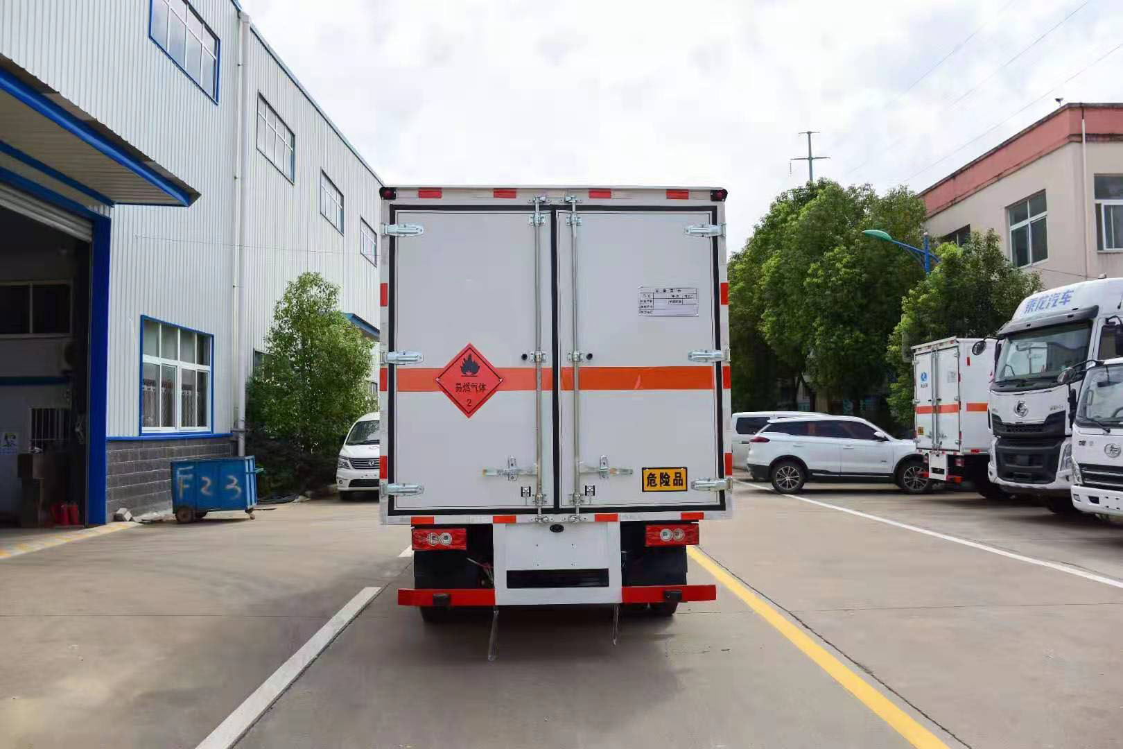 福田時代藍牌寬體危險品車嚴格按照公告尺寸制作,外板采用1mm厚冷軋板有一次性成型的百葉窗,內飾為導電性能良好的鋁板有透氣孔,內襯為矩形管骨架牢靠穩定,內部填充為透氣防潮阻燃的擠塑板,四種材料經現代工藝復合而成,廂體外部上下鋁合金型材包邊,底板和車廂前下部鋪橡膠皮,后門雙開,右側中部單開門,內部有固定貨物的臥環,車輛外部有靜電帶、滅火器、防火罩,車廂內安裝煙霧報警器和門防盜報警器,嚴格按照國家危險品相關法規張貼。