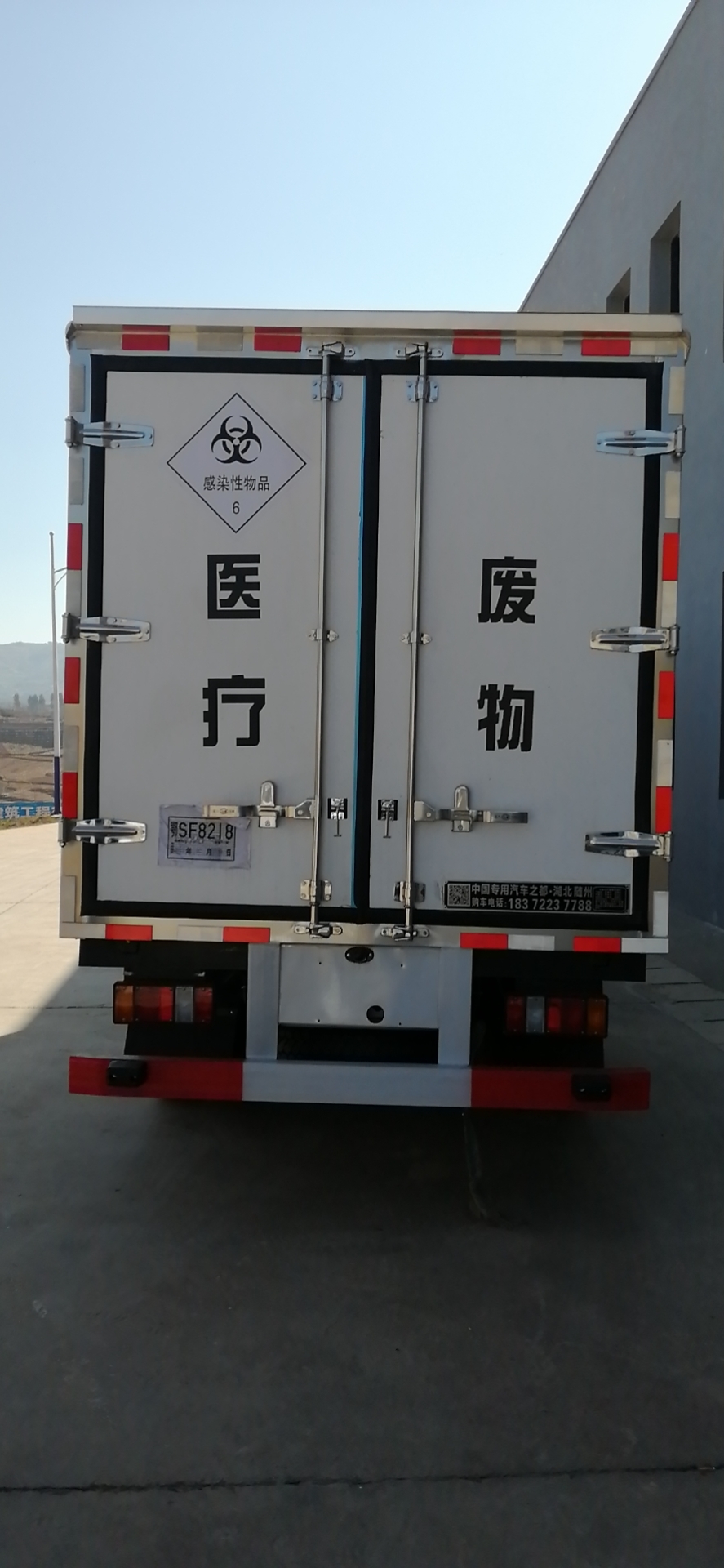 江鈴順達國五醫療廢物轉運車,整車尺寸:5995*2020*2900(mm)貨箱尺寸:4050*1860*1830(mm),采用江西五十鈴115馬力發動機(JX4D30B6H),2.892ml排量,采用江鈴順達窄體駕駛室,原廠危險品車底盤,五檔變速箱,7.00鋼絲胎,空調,方向助力,油剎,中控鎖,電動車窗,排氣管前置,前盤碟剎,限速