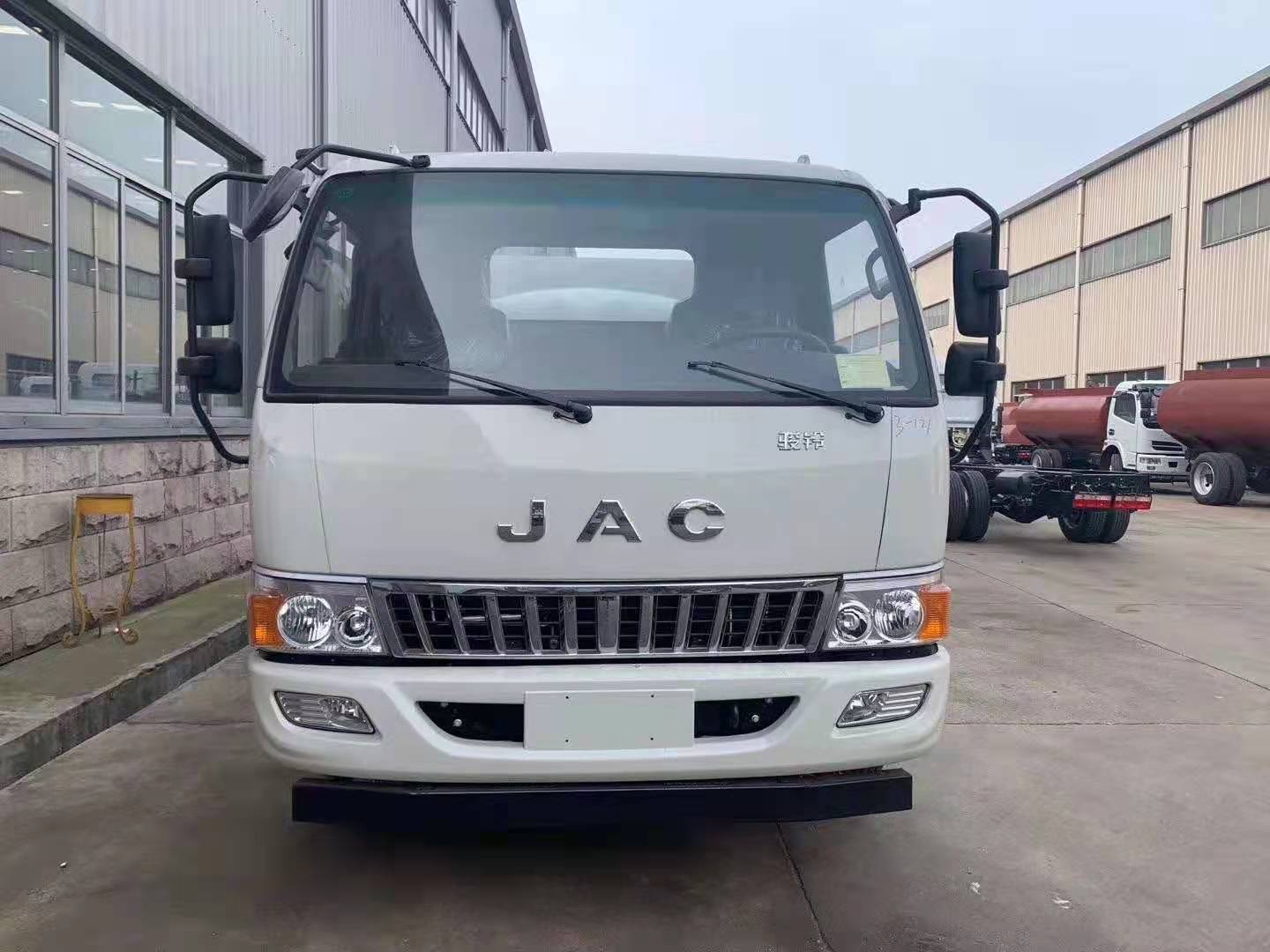5噸江淮駿鈴V5油罐車底盤采用江淮高端駿鈴V5駕駛室,單排1900mm寬體3人座,3365mm軸距,濰柴動力WP2.3NQ130E61(130馬力),星銳六檔變速箱,斷氣剎,7.00R16鋼絲輪胎,液壓方向助力,氣推離合助力,OBD接口,框架式后視鏡,MP3收放機,LED日間行車燈,電動車窗、中控鎖,多功能方向盤,電加熱后視鏡,可調節方向盤,方向盤帶娛樂功能、定速巡航功能,大燈調節,天窗通風口,多功能鷹眼儀表,語音提醒功能,發動機燃油預熱,底盤故障自動檢測功能,鍍鋁鋅板100L油箱,暖風,原廠空調,自動調整臂,底盤線束預留PTO、遠程油門線束接口,電磁式電源總開關,排氣輔助制動,前盤,限速,ABS,行車記錄儀,輪胎防爆裝置,剎車片報警裝置,危化品專用底盤。