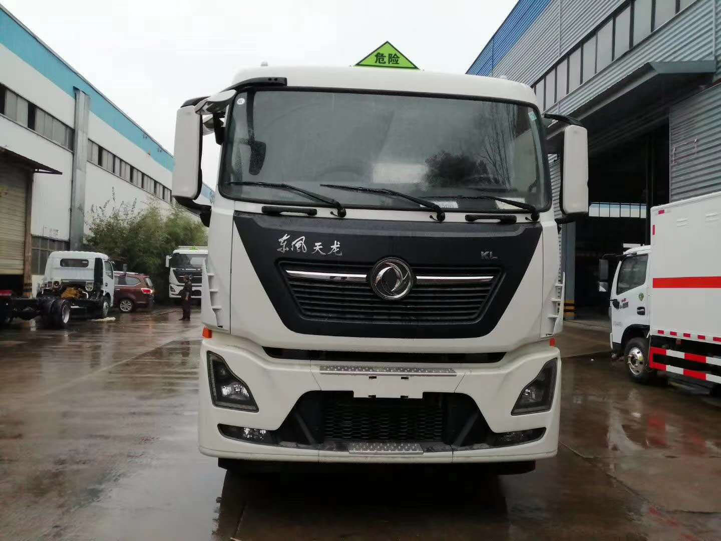 東風天龍9米4國六氣瓶運輸車采用東風天龍高頂帶臥危險品車,DDi發動機350馬力國六排放標準,帶方向助力,空調,295真空綱絲胎,帶前盤式剎車,ABS,限速裝置,大燈高低可調,安裝防飛濺檔泥板,三角墊木,反光背心,帶危險品三角燈防火罩。帶空氣懸架,防爆胎裝置,剎車報警,安全帶提示。帶EBS(電空制動系統),FCWS(防碰撞預警),LDWS(車道偏離預警),TPMS(前軸單臺胎壓監測)。