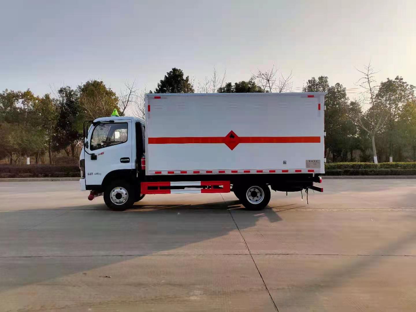 東風(fēng)福瑞卡危險(xiǎn)品車廂體材質(zhì)為復(fù)合板廂體,底部鋪有阻燃導(dǎo)靜電膠板,廂體側(cè)面裝有固定拉環(huán)。在車廂內(nèi)頂部安裝感煙報(bào)警器,在門器框上方安裝有防盜報(bào)警器,廂體外側(cè)安裝示廓燈及滅火器支架,配置兩個(gè)滅火器,并有“嚴(yán)禁煙火”和“易燃?xì)怏w”等字樣,廂體周邊貼反光標(biāo)識(shí)。后門貼有安全告示,危險(xiǎn)品標(biāo)牌。車輛尾部副梁安裝兩條拖地導(dǎo)靜電帶,駕駛室頂部裝有安全三角燈。廂體顏色可定制:黃、白、灰色等。