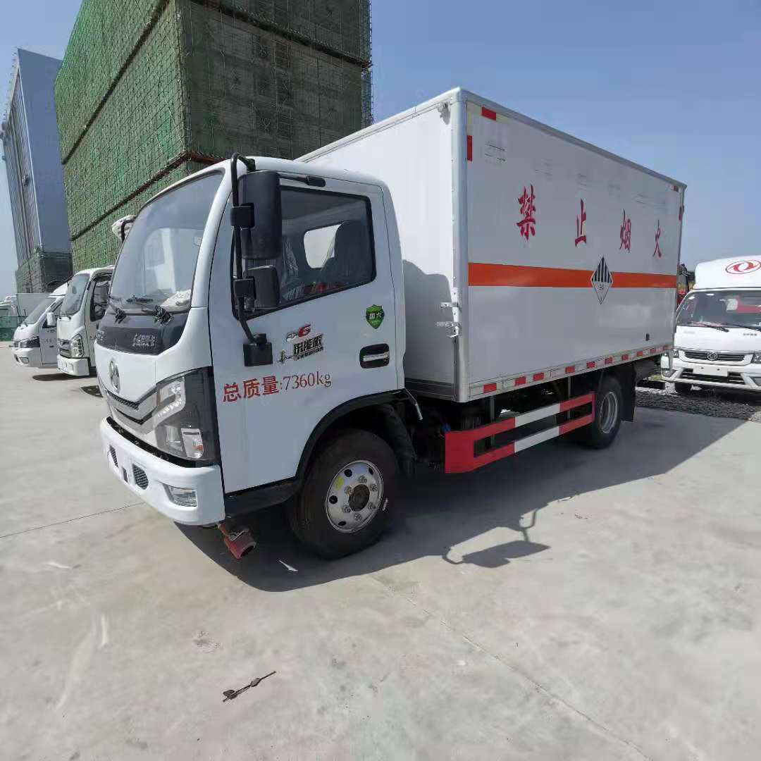 東風多利卡國六黃牌雜項危險品車廂體為雙層金屬骨架結構,外部為冷扎鋼板,內壁采用鋁合金板蒙面,夾層為隔熱阻燃材料填充。設置對開門,側壁設有防雨功能自然通風窗口,以使廂內外空氣流動,廂體內部做防靜電處理,廂體底部與廂內前部鋪有阻燃導靜電膠板,并與底盤等電位連接,通過車輛后端的導靜電裝置與大地相連,可防止靜電火花的產生和車輛靜電及時釋放,提高易燃氣體廂式運輸車的安全性。廂體內部前面和側面裝有固定拉環,與捆綁帶使用捆綁貨物以避免移動,保證安全。帶防盜報警器、靜電帶。
